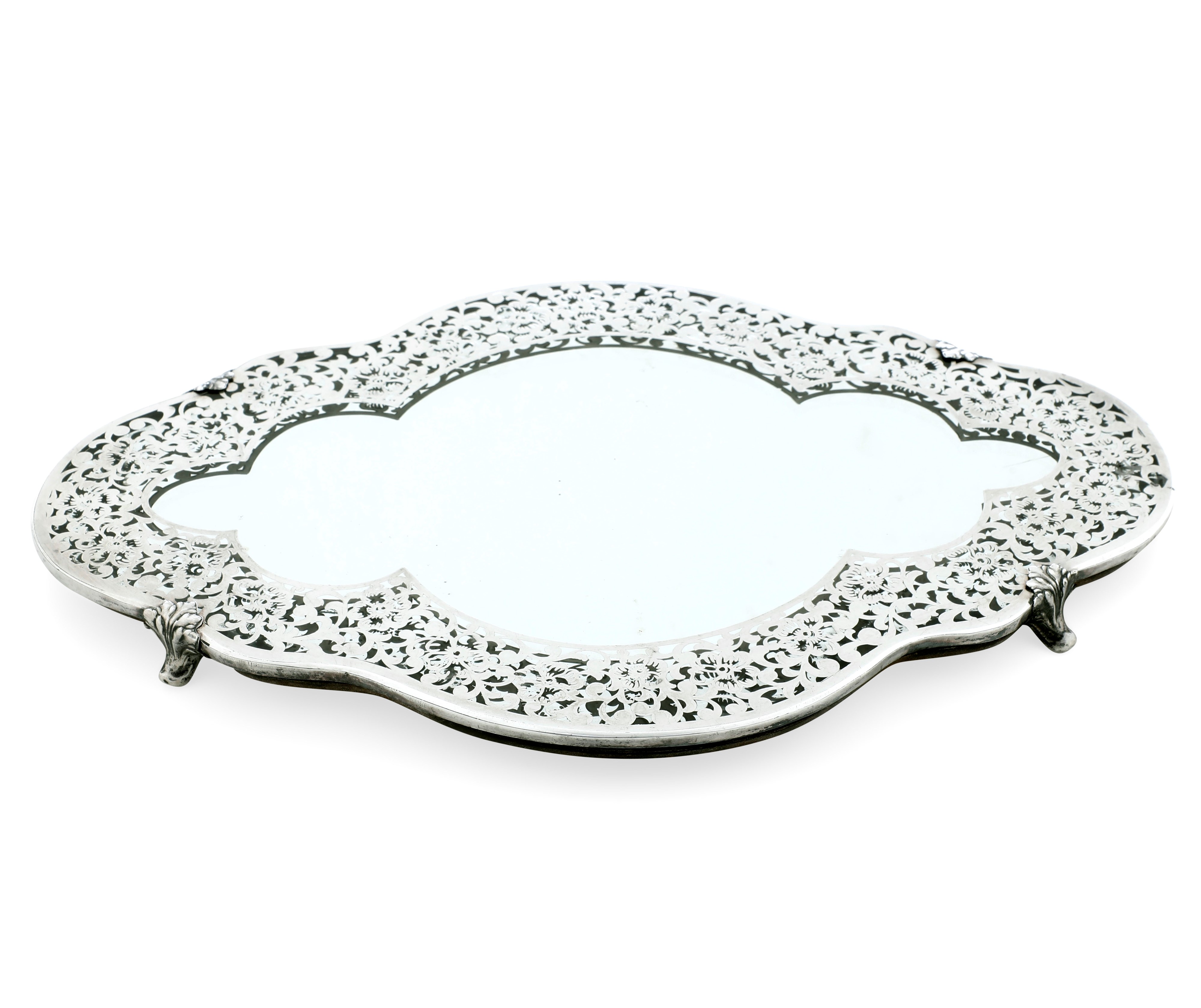Présentoir con bordo traforato e specchio. Argenteria italiana del XX secolo
