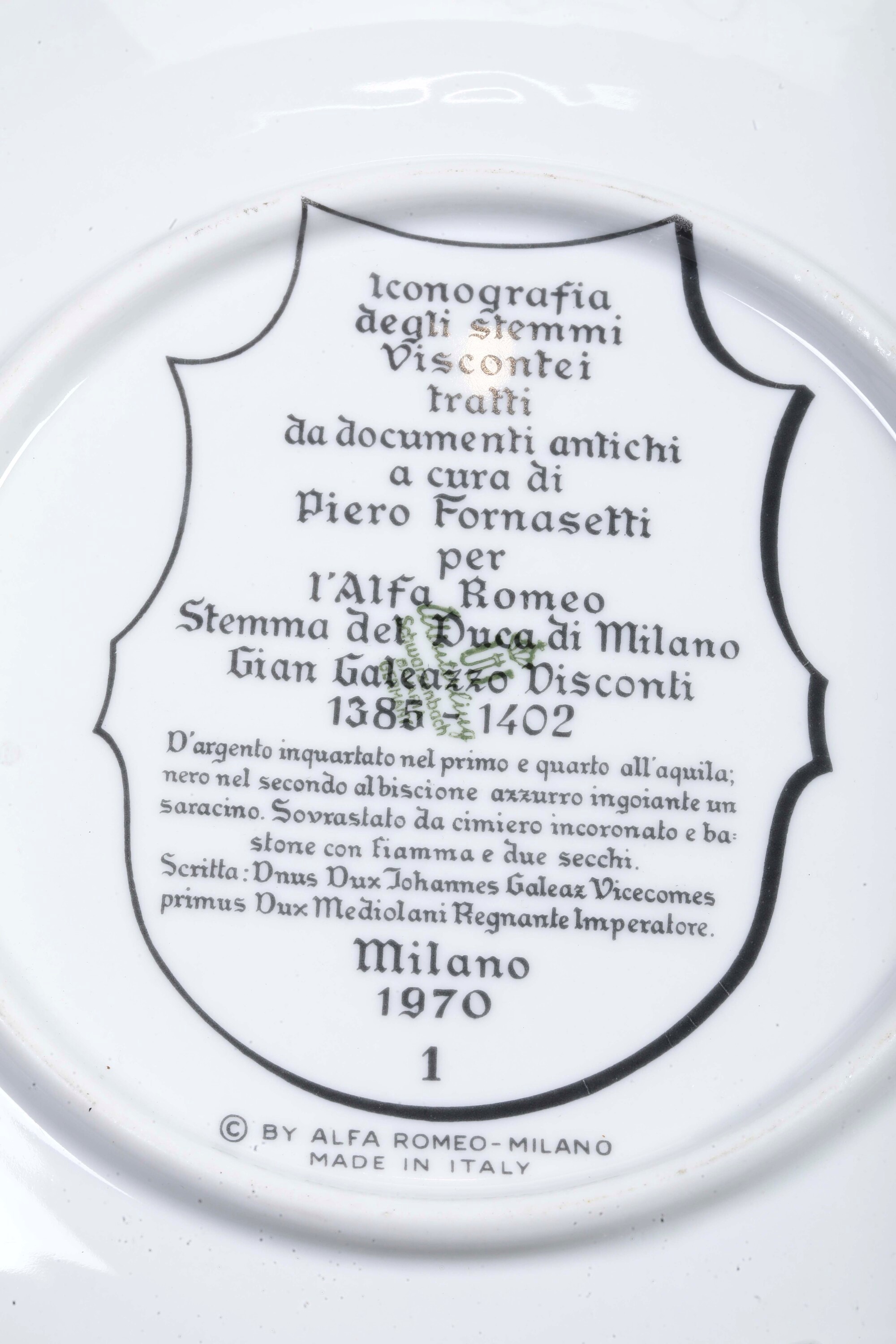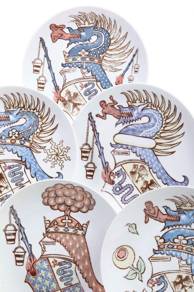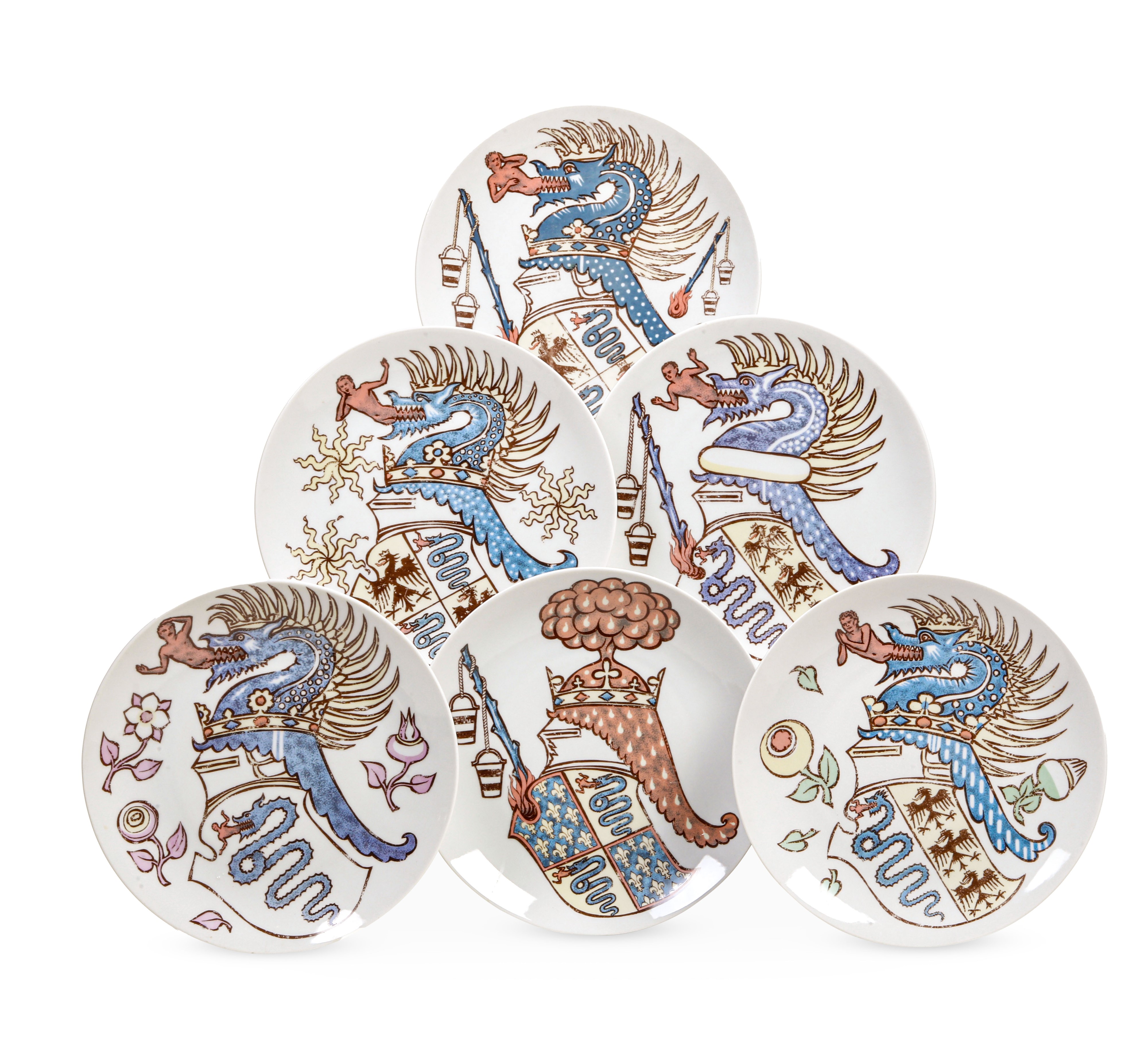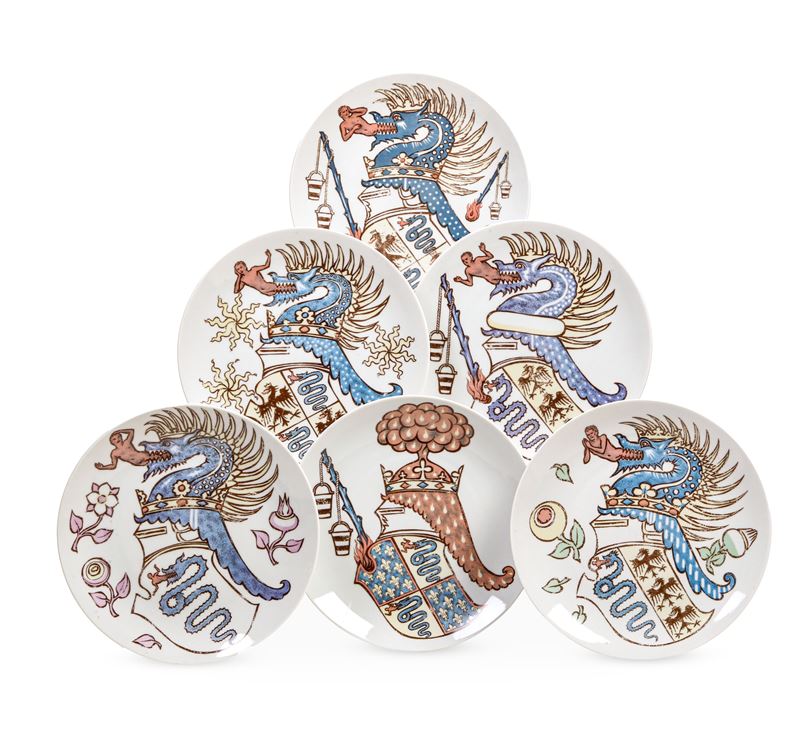 Sei piatti della serie "Iconografia degli stemmi viscontei" eseguiti per Alfa Romeo