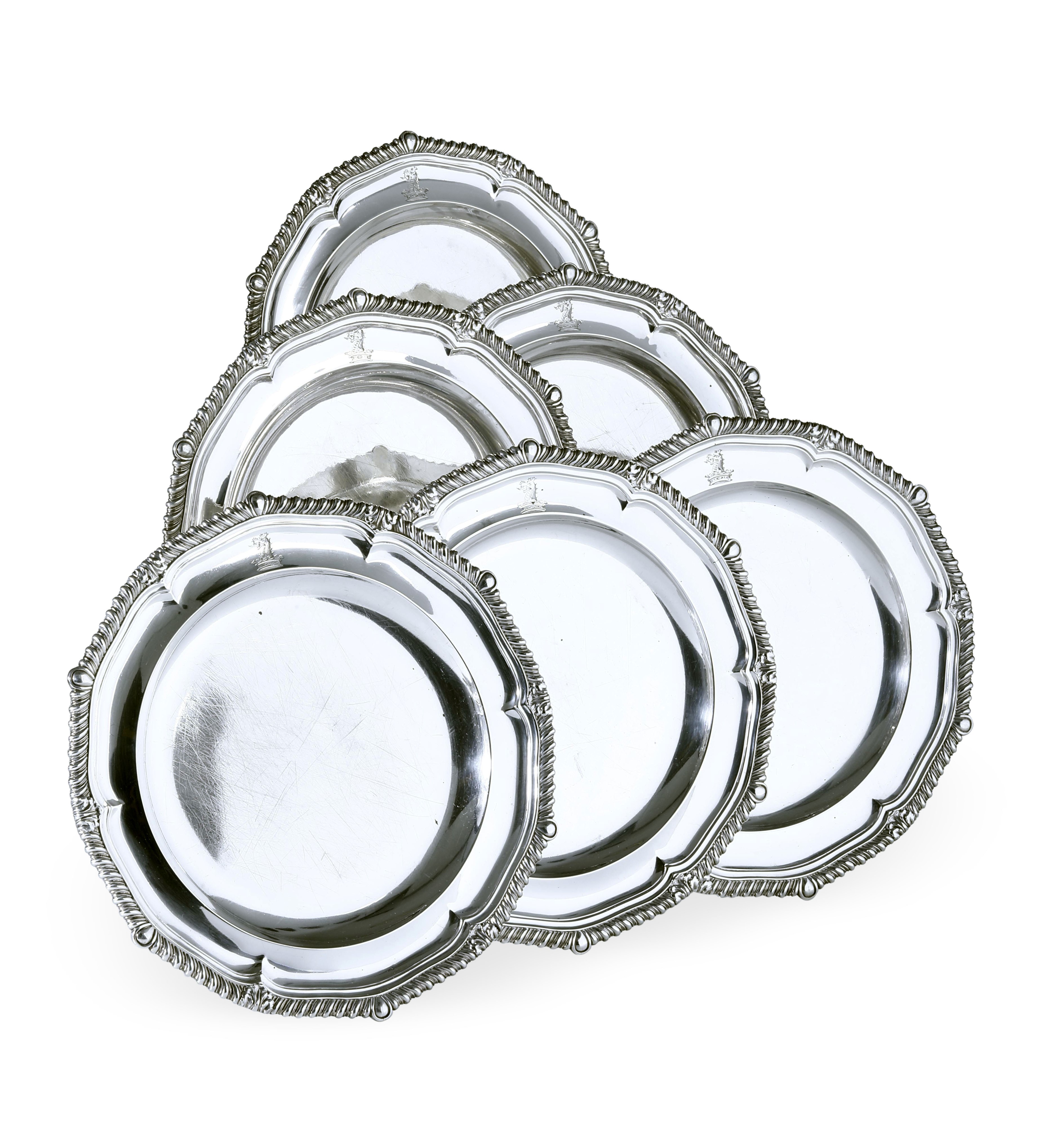 Sei piatti piani. Londra, 1819, argentiere Paul Storr