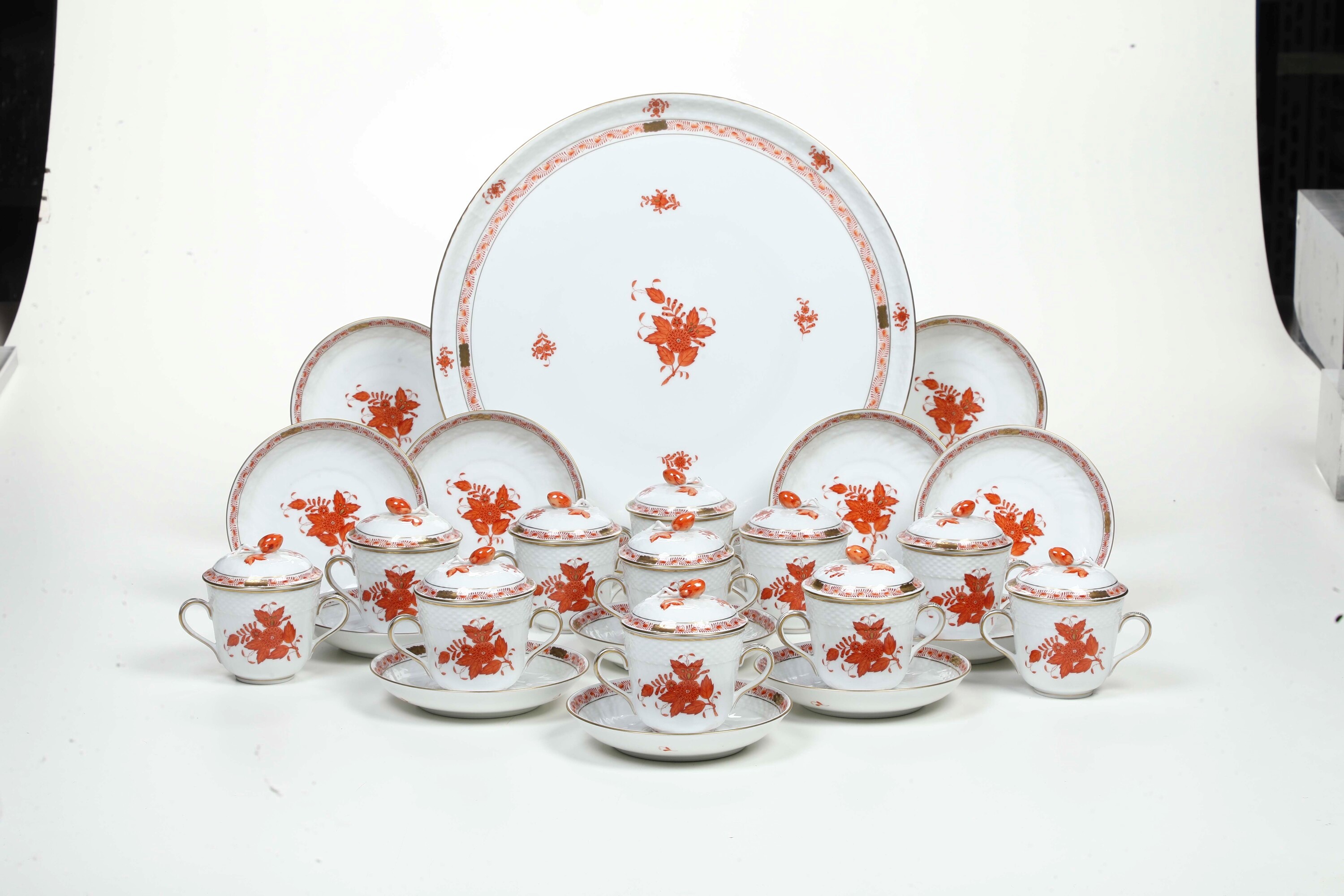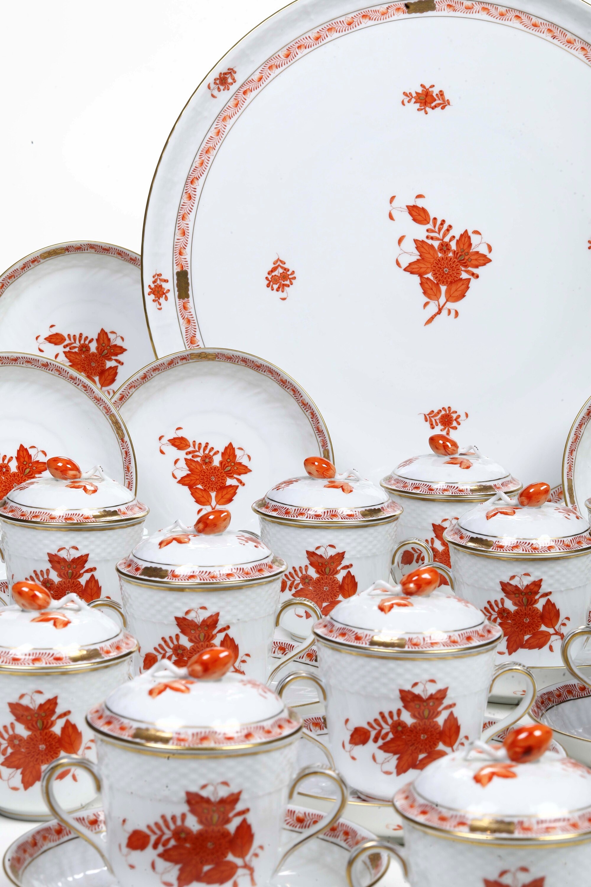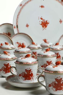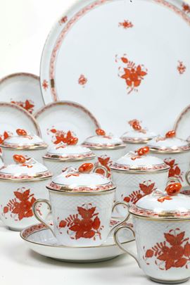 Servizio da consommé “Apponyi Orange” Ungheria, Manifattura Herend, XX secolo