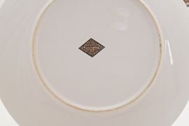Il servizio per 12 persone conta 52 pezzi ed è così composto: 12 piatti fondi (diametro cm 23); 12 piatti piani (diametro cm 26); 11 piatti da dessert (diametro cm 20,5); 1 insalatiera (altezza cm 12; diametro cm 24); 1 piatto da portata tondo (diametro cm 29); 1 piatto da portata ovale (cm 35,5x23); 2 vassoietti ovali (cm 35x15; cm 24x16); 12 tazze da caffè con piattino (altezza tazza cm 5,5; diametro cm 12)