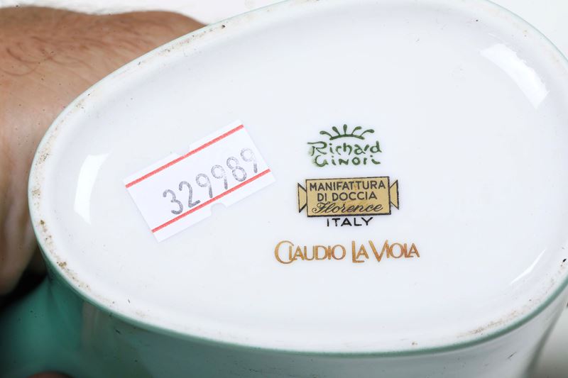 Porcellana. Marca: corona con “Richard Ginori”; cartiglio in oro con “Manifattura di Doccia Florence”; “Claudio La Viola” in oro. Conservazione: ottima