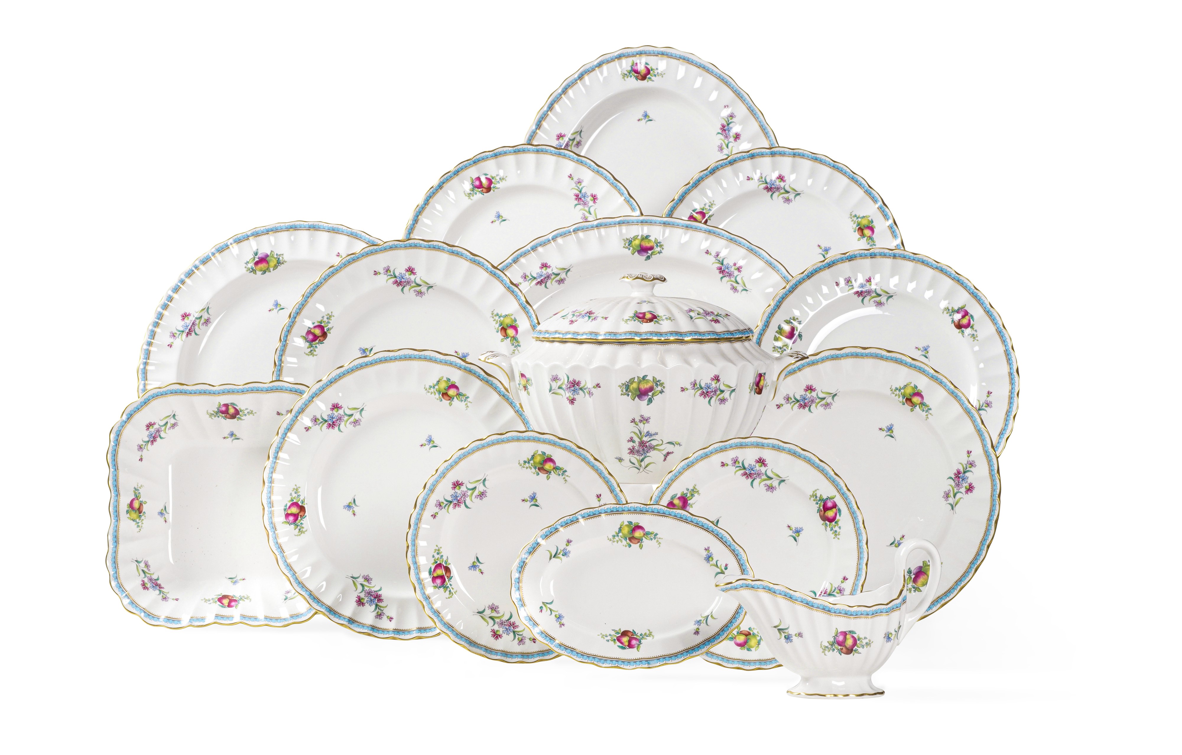Servizio da tavola “Trapnell Sprays Turquoise Border” Inghilterra, Manifattura Spode, 1983-2004