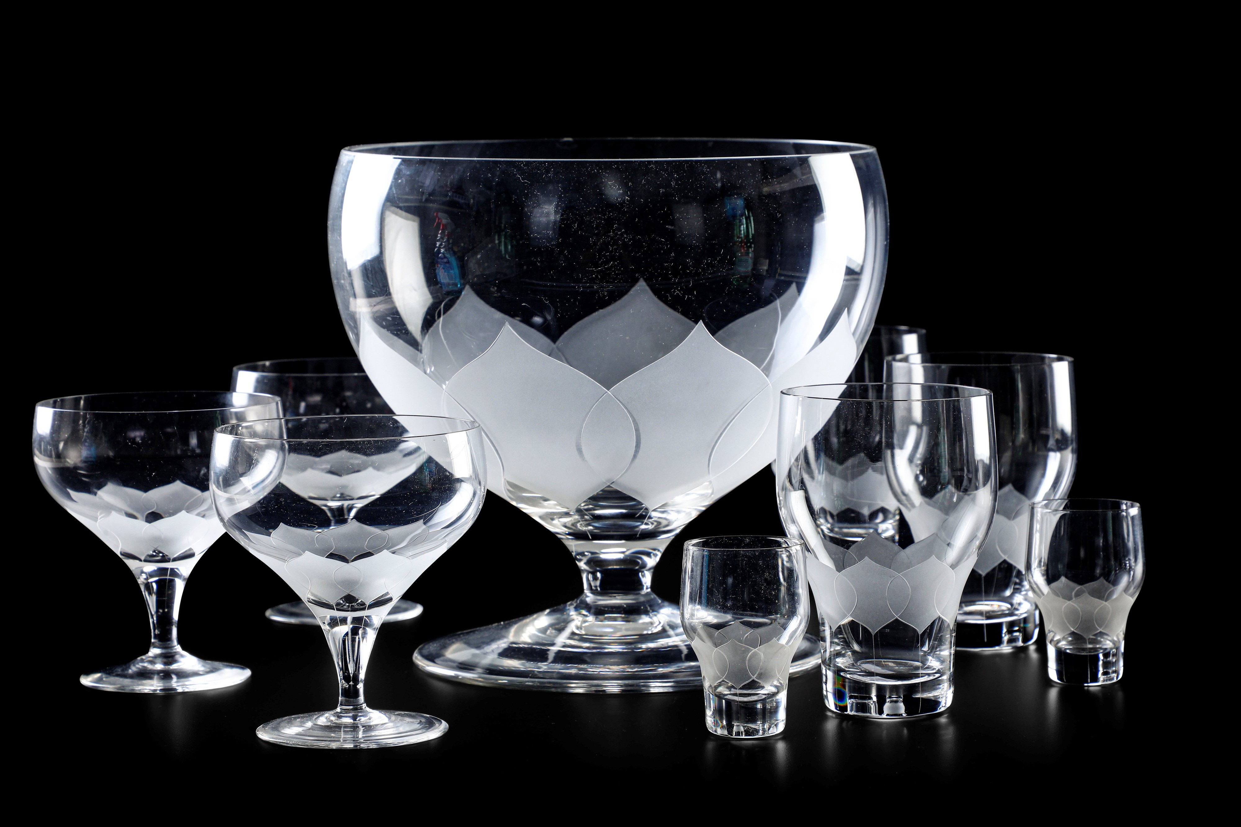 Quando Bjørn Wiinblad progetta il servizio da tavola in porcellana “Lotus” per Studio-Linie della Rosenthal, lo accompagna con il servizio in cristallo che prende lo stesso nome.