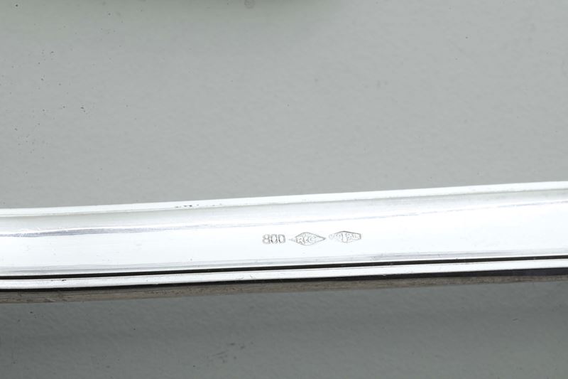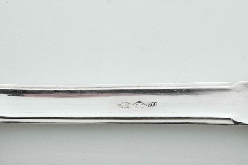 Servizio di posate. Argenteria italiana del XX secolo, marchio con fascio littorio in uso dal 1935 al 1945, argentiere Ricci & C. Alessandria