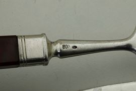 composto da 13 coltelli, 12 forchette, 12 cucchiai; 7 manici diversi tra loro di ricambio, 1 manico di foggia e colore diverso, probabilmente per posata da portata.