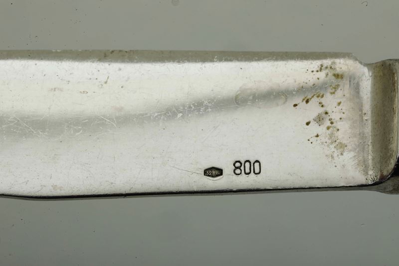 Servizio di posate da dessert con manico in agata. Argenteria toscana del XX secolo, bollo con fascio littorio in uso dal [..]