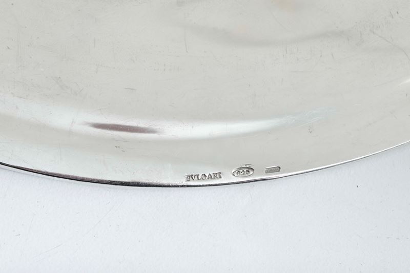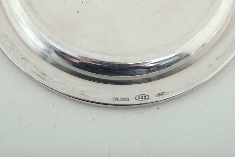 Set composto da dodici piatti, 12 piattini da pane e 12 sottobicchieri. Argenteria italiana del XX secolo. Argentiere Mario Locchi, Roma per Maison Bulgari