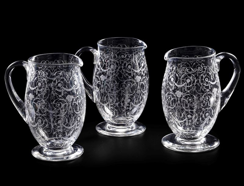 Tre caraffe "Michelangelo" Francia, Manifattura Baccarat, XX secolo