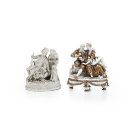 Porcellana e biscuit. Altezza massima cm 20. Conservazione: piccole sbeccature e mancanze.