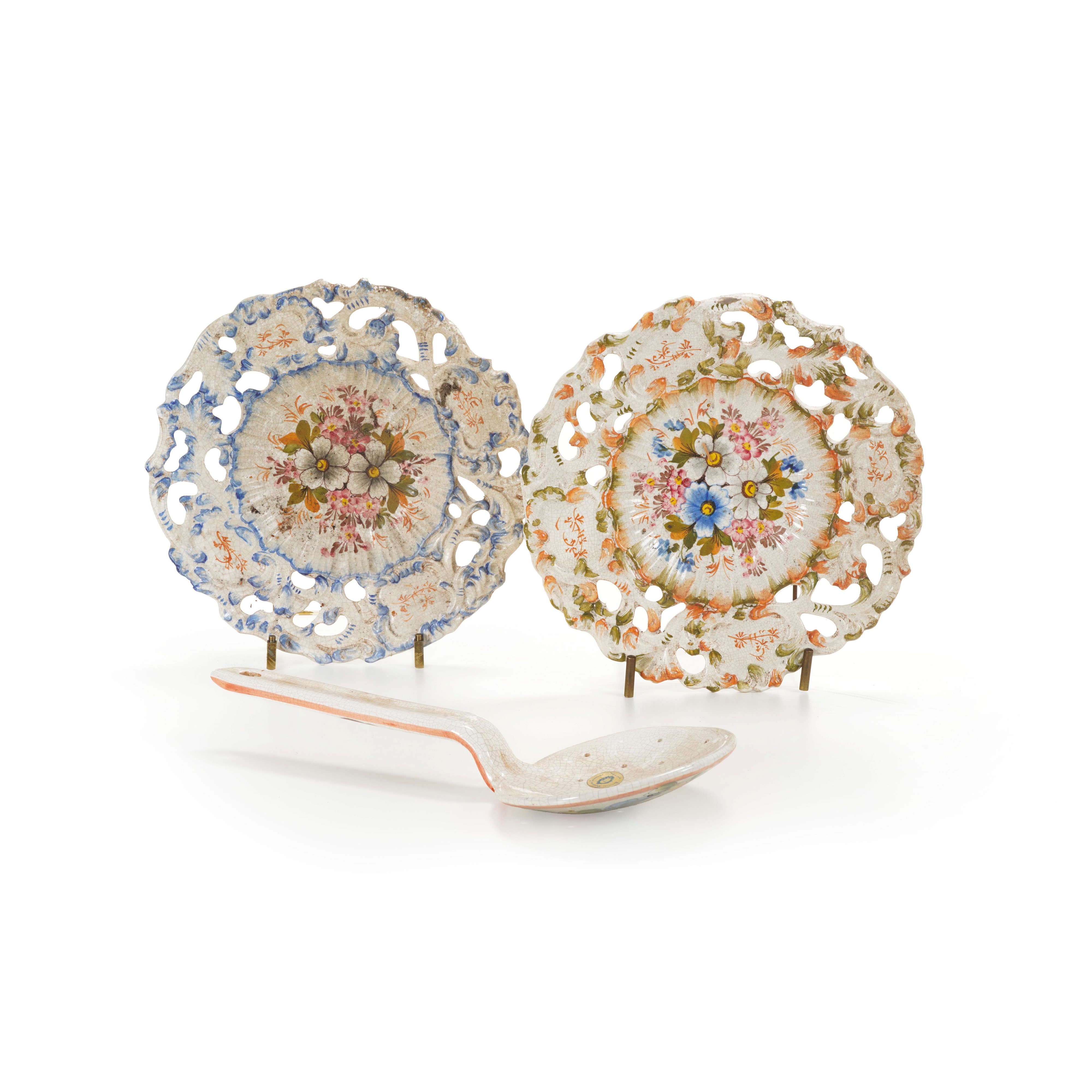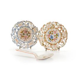 piatti con decoro floreale e bordo traforato