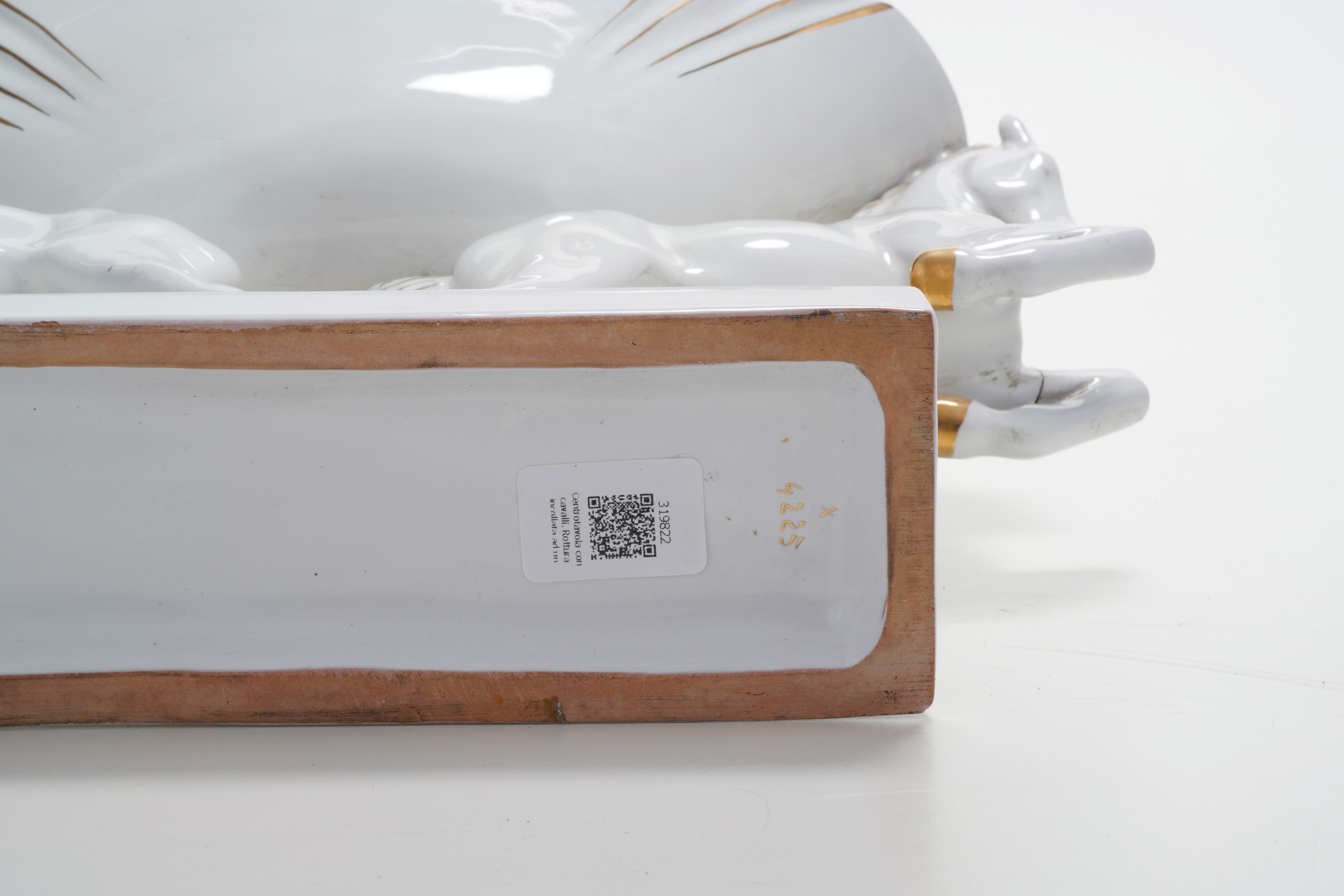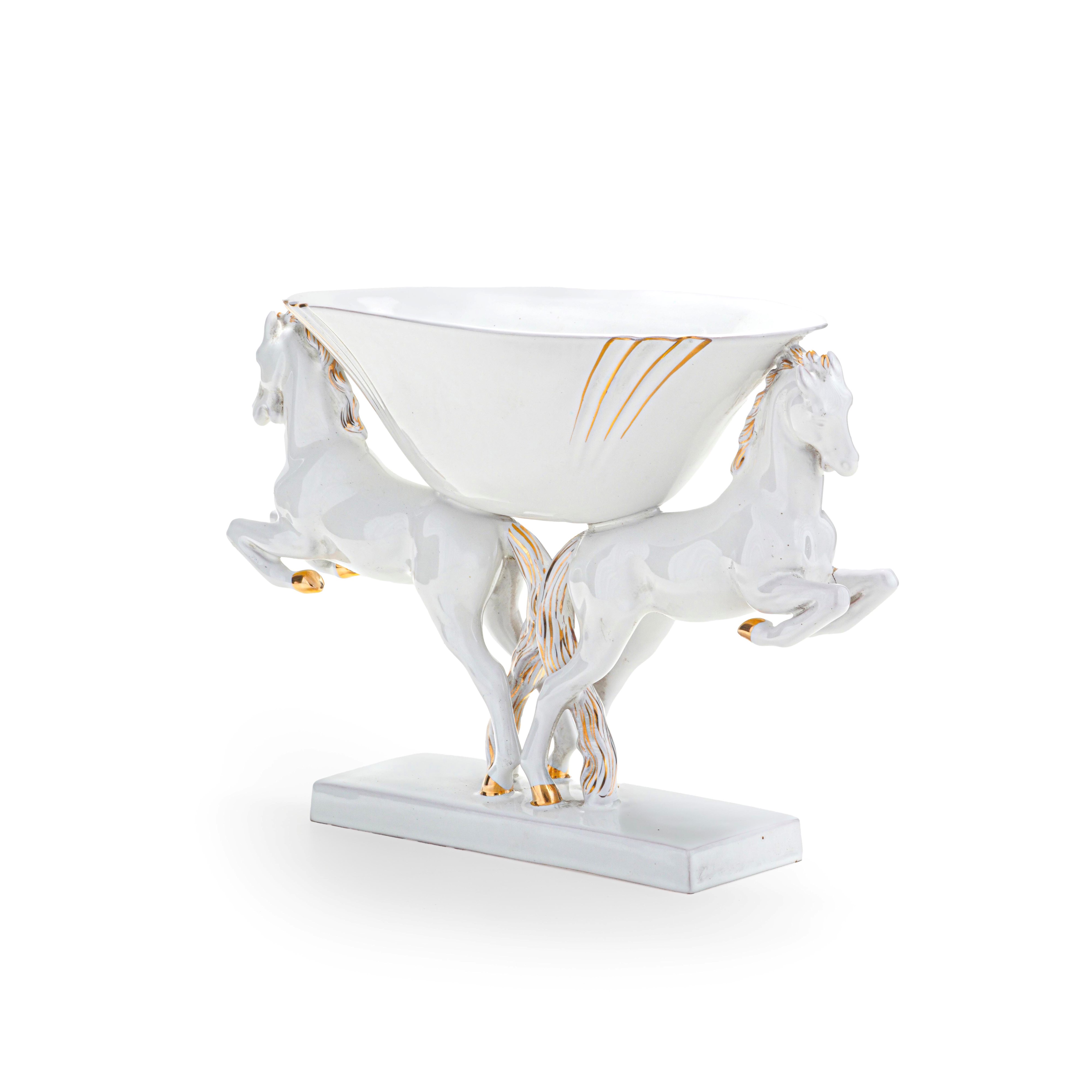 Grande centrotavola in porcellana bianca con lumeggiature in oro
