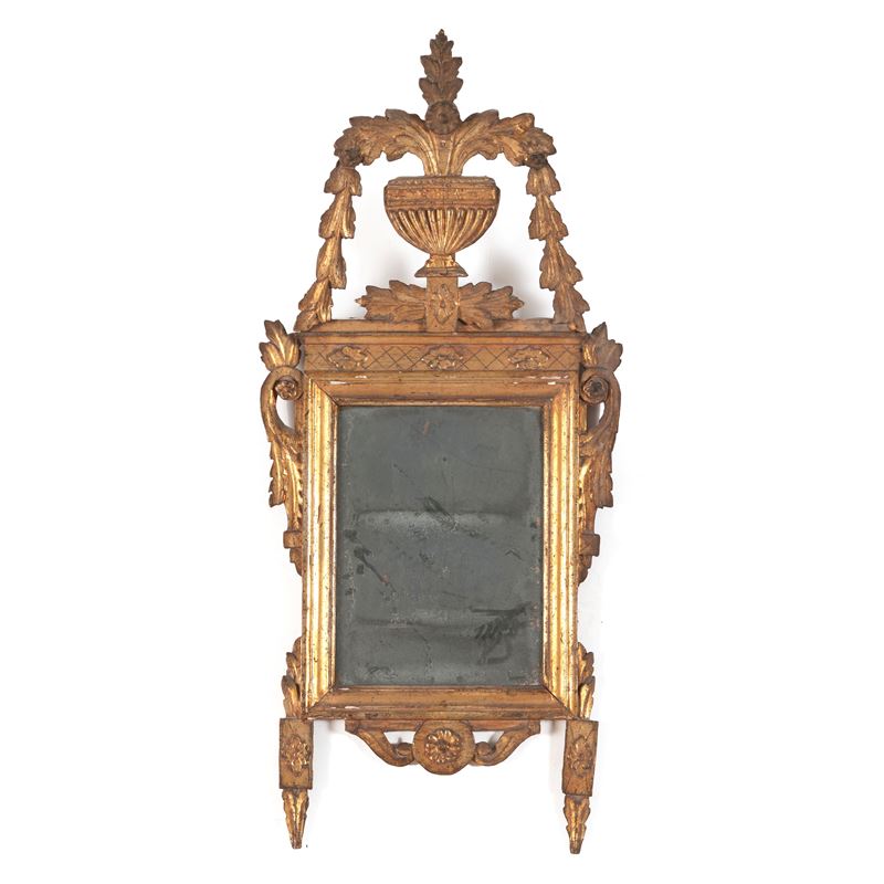Piccola Specchiera con cornice in legno scolpito e dorato