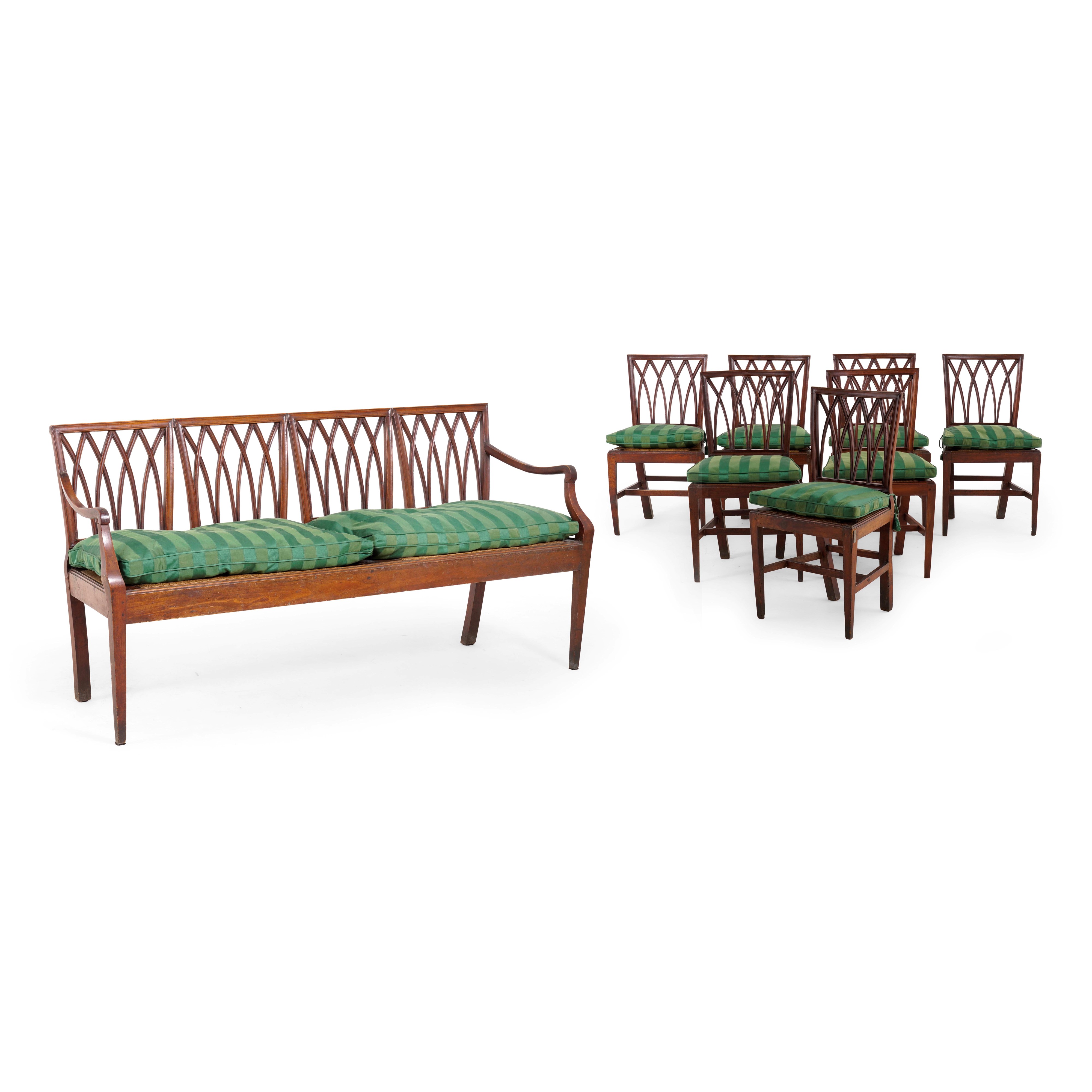 Salotto composto da divano e 7 sedie. XIX secolo