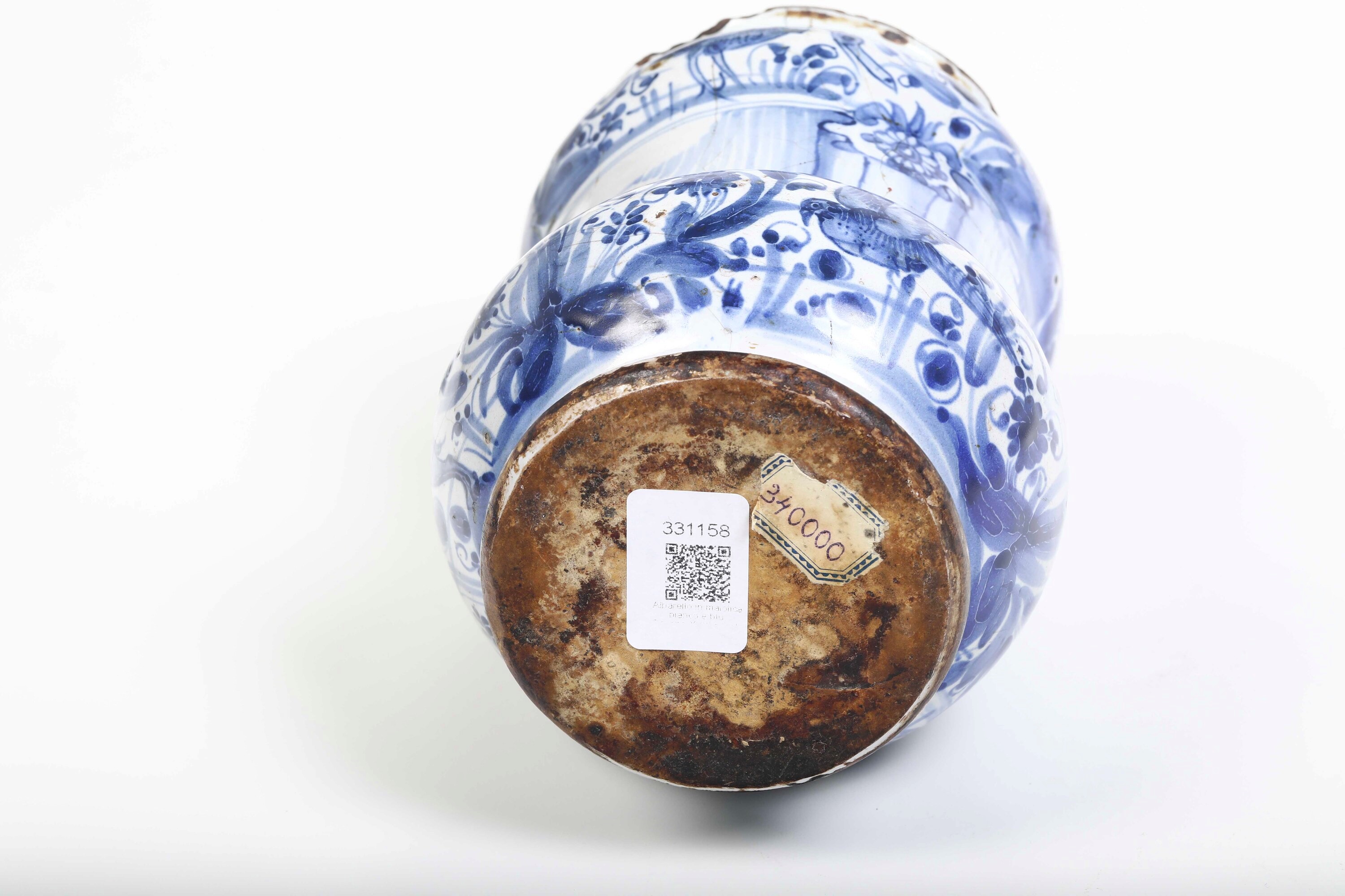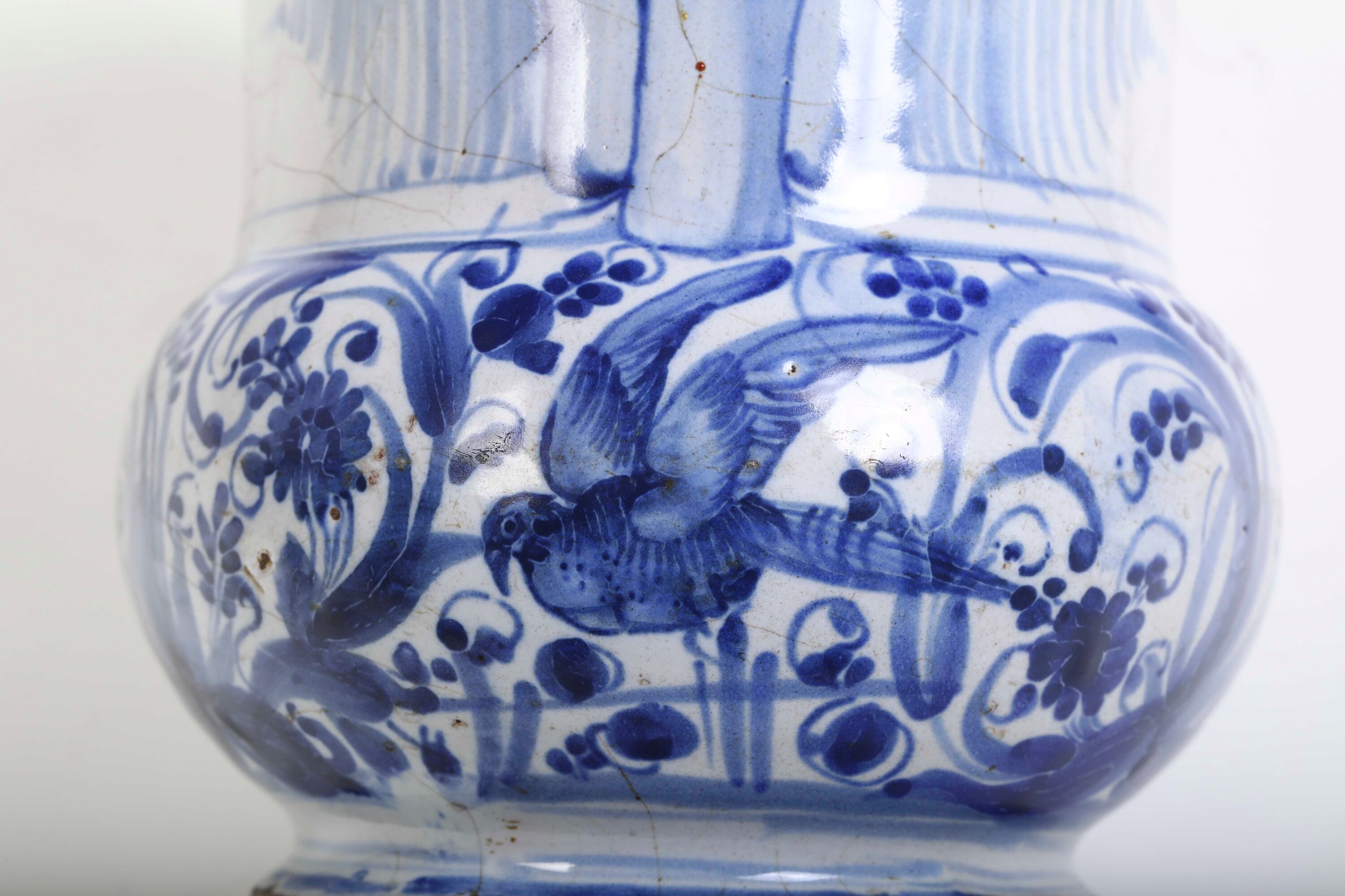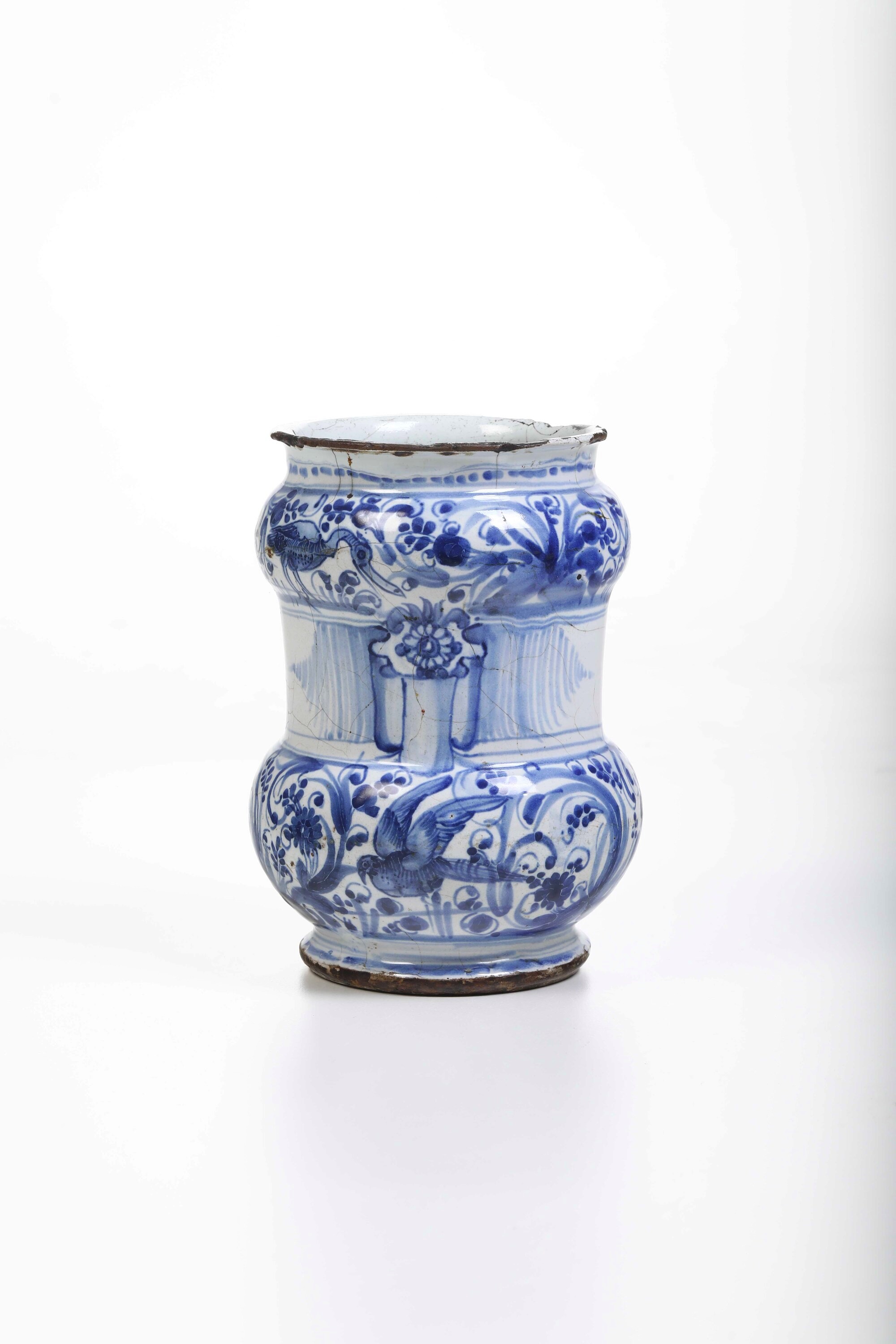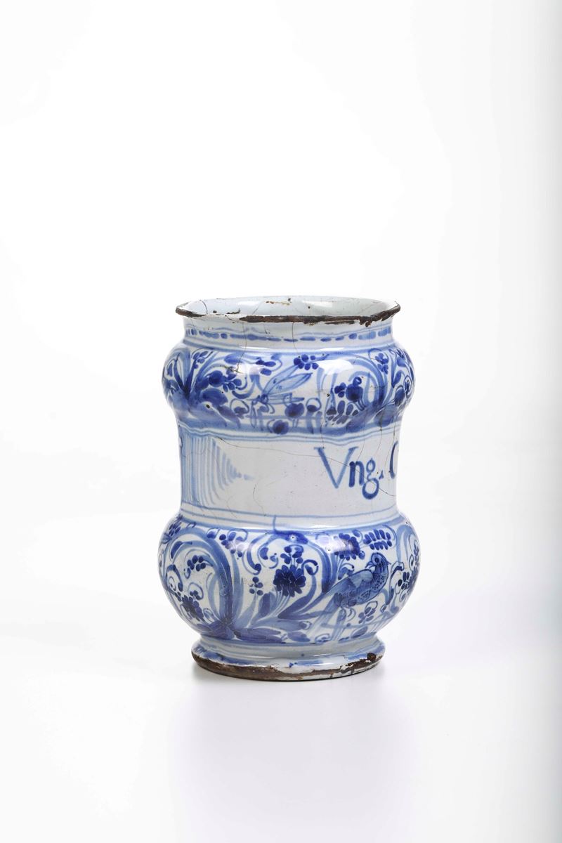 Maiolica. Marca: assente. Altezza cm 18,5 circa. Conservazione: sbeccature al bordo superiore; felature e craquellures