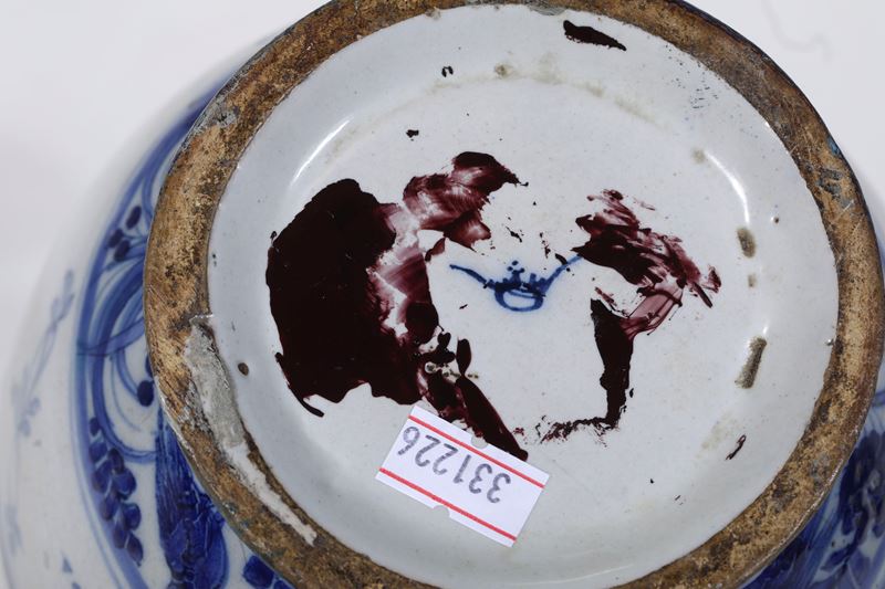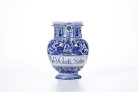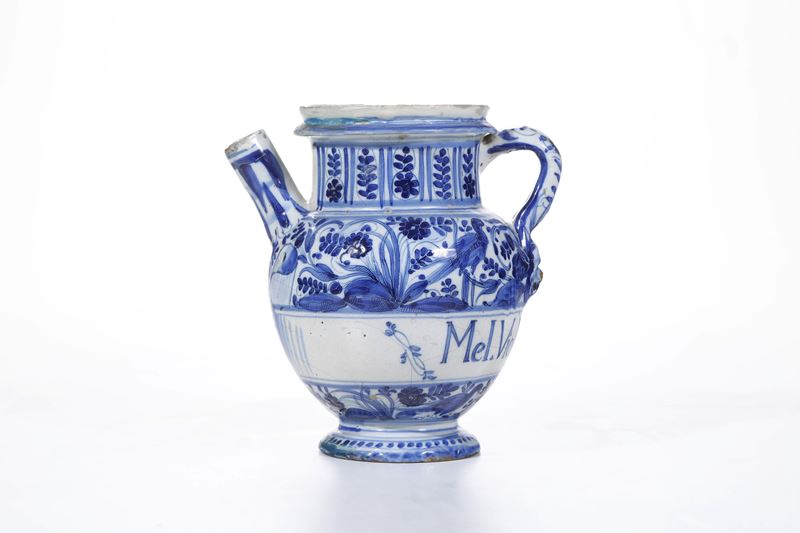 Maiolica. Marca: Corona (?). Altezza cm 22. Conservazione: sbeccature ai bordi e qualche caduta di smalto restaurate