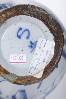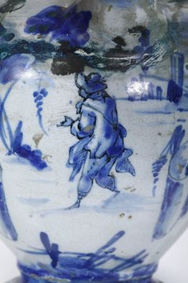 Maiolica. Marca: Stella con "S" in blu. Altezza cm 23,5 circa. Conservazione: rotto in diversi frammenti e ricomposto in vecchio restauro