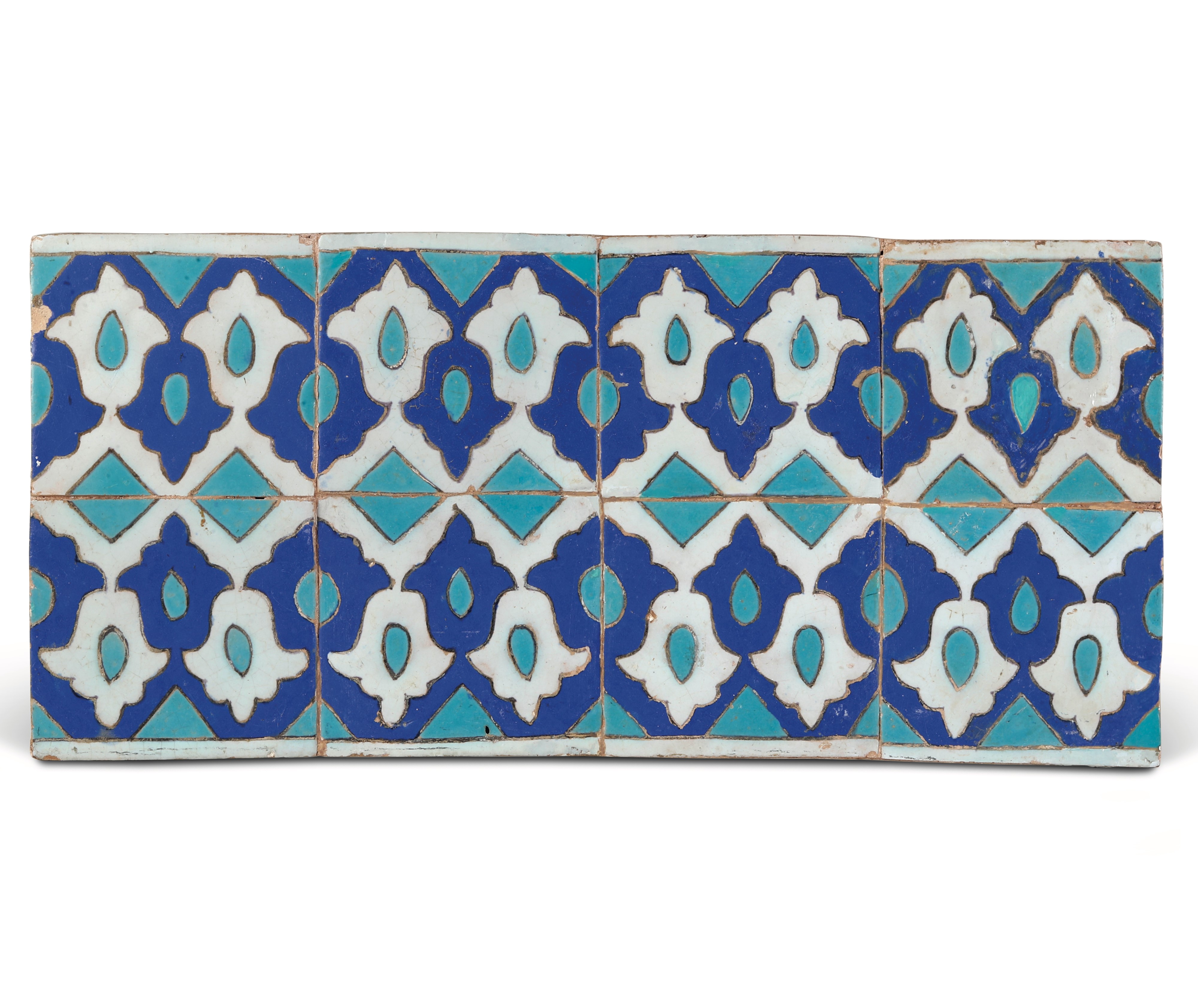 Terracotta smaltata. Dimensioni: cm 23,5x50,2; dimensioni singola mattonella cm 11,5x12,5. Conservazione: ottima; piccole sbeccature