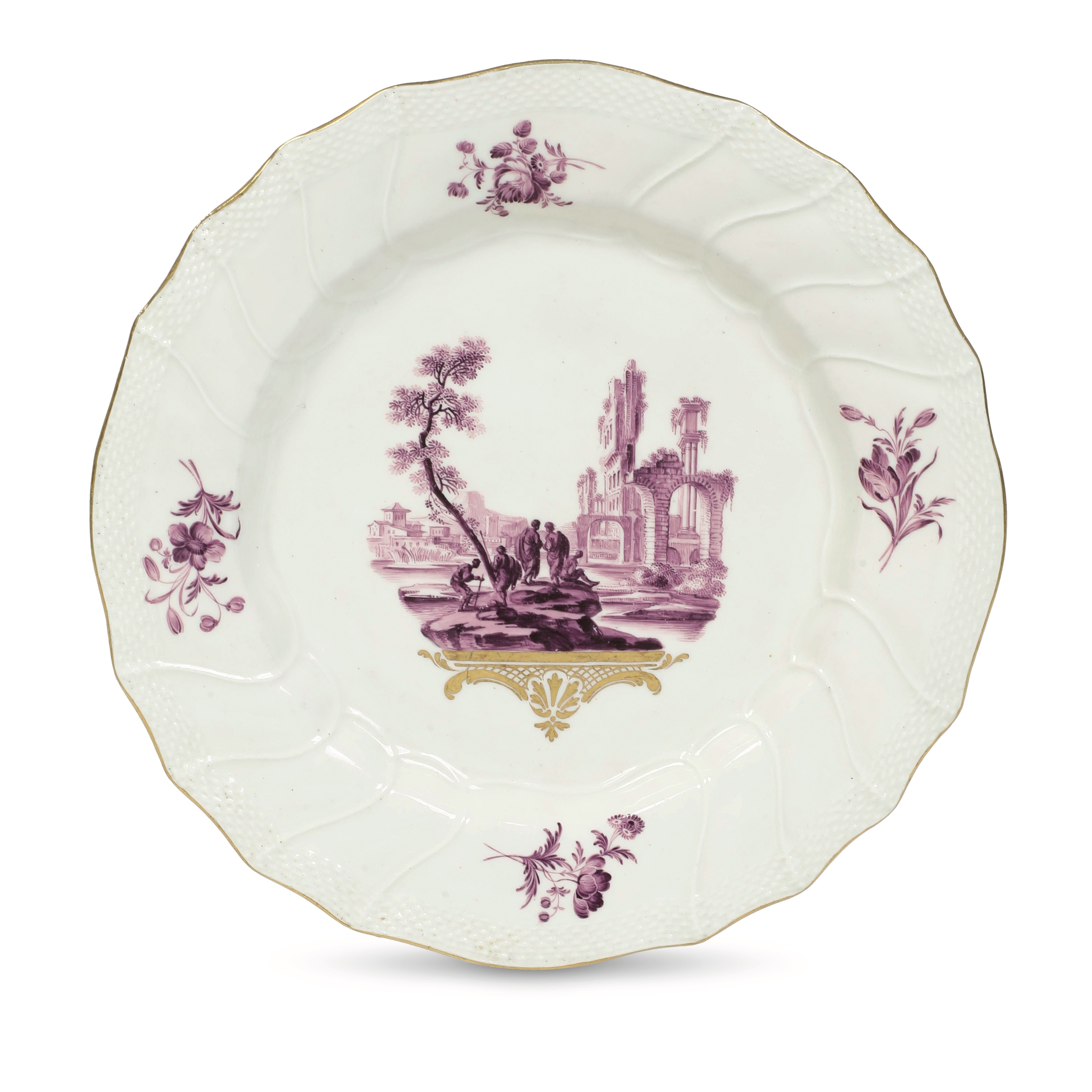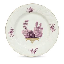 Raro piatto Belgio, Manifattura di Tournai, 1763 circa Decorazione di Michel-Joseph Duvivier