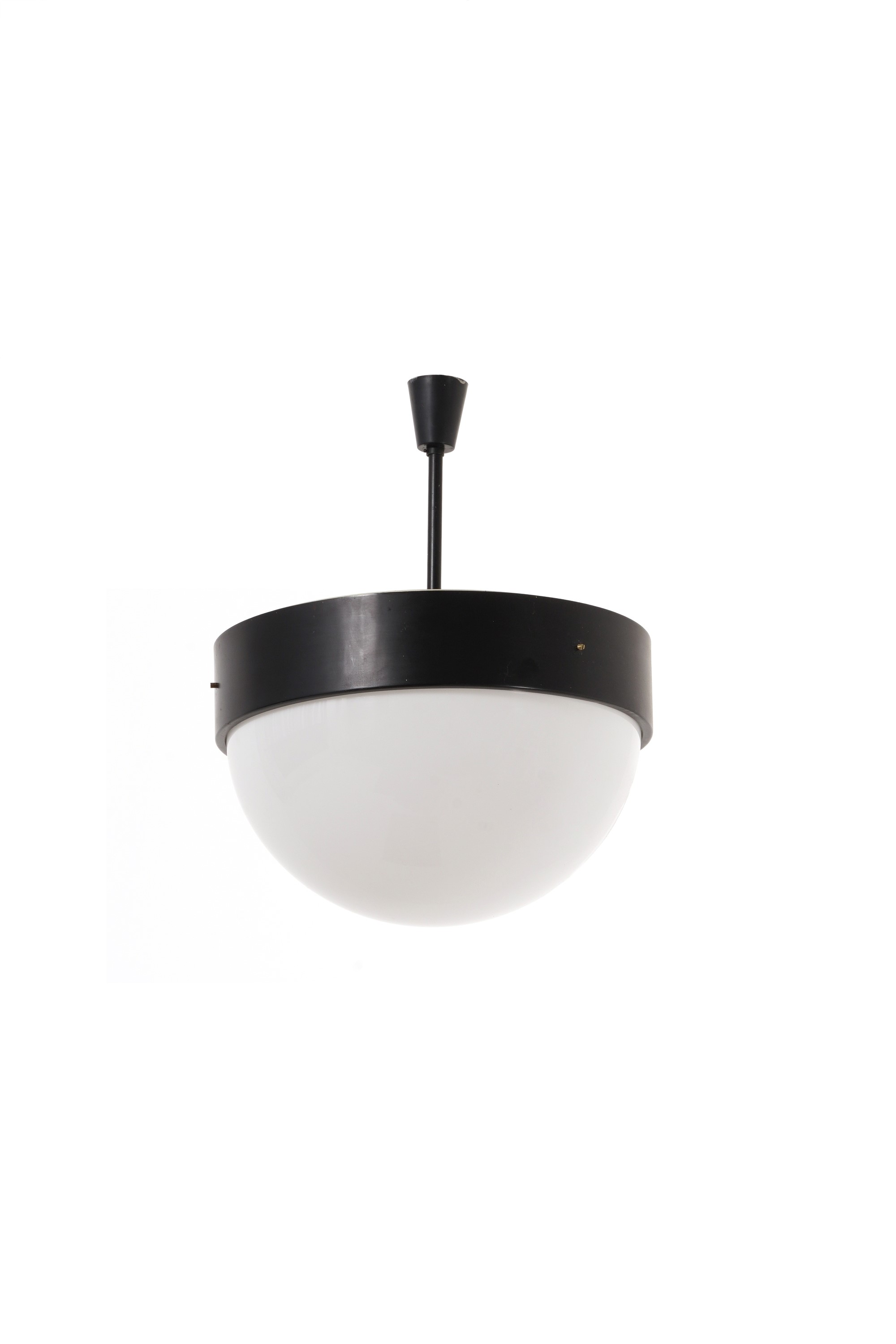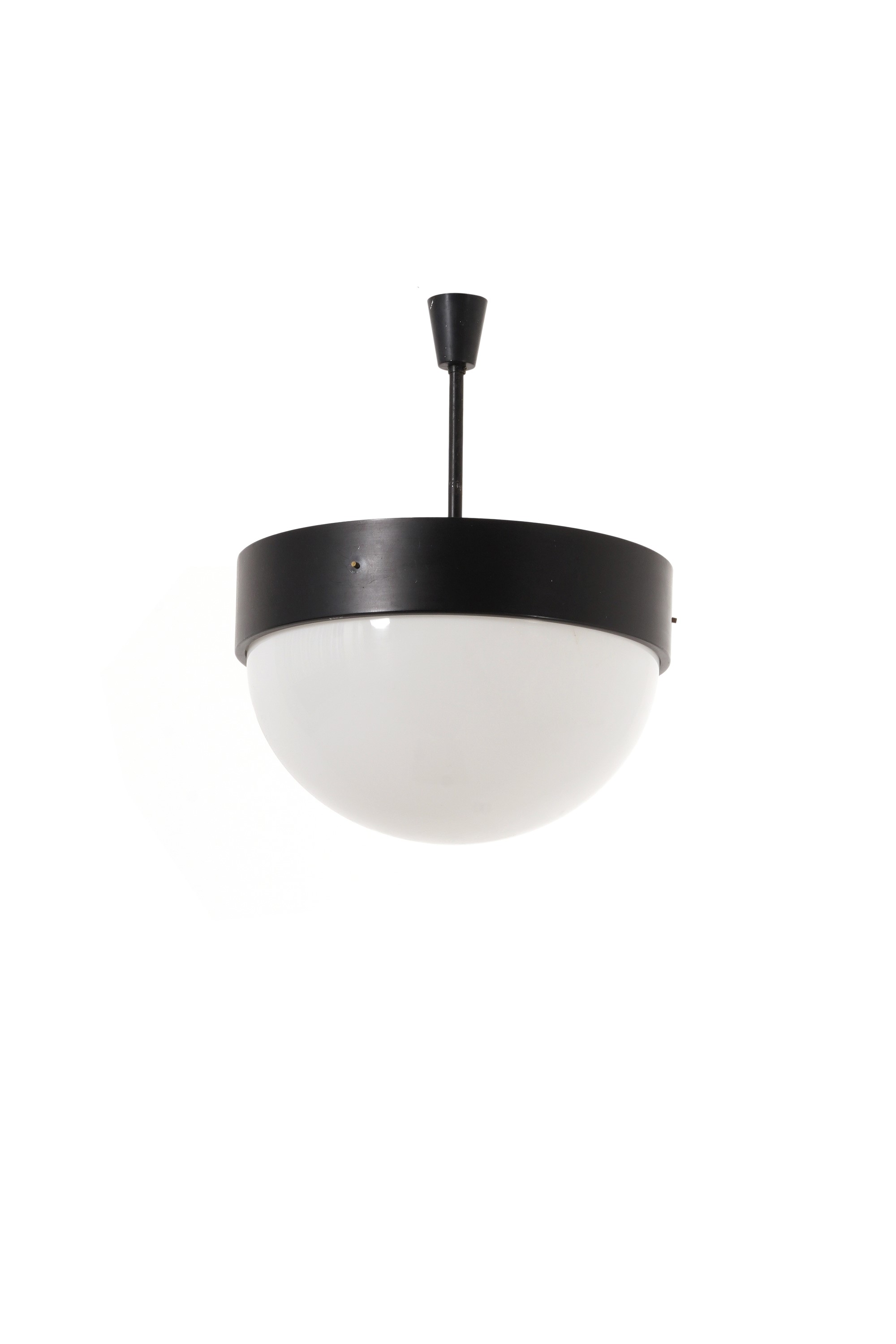 Struttura in metallo laccato e diffusore in vetro opalino (difetti).