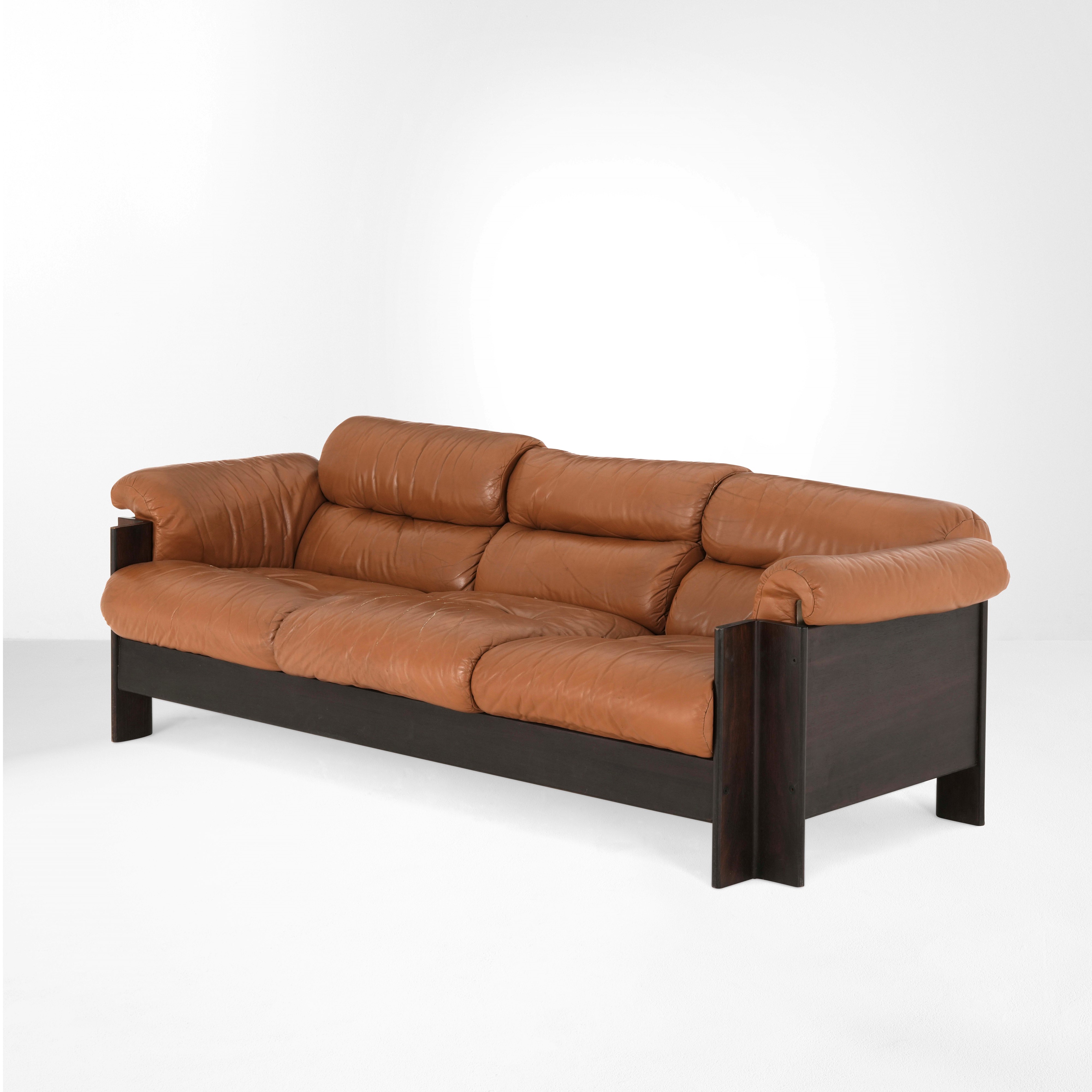 Struttura in legno ebanizzato e rivestimento in cuoio.