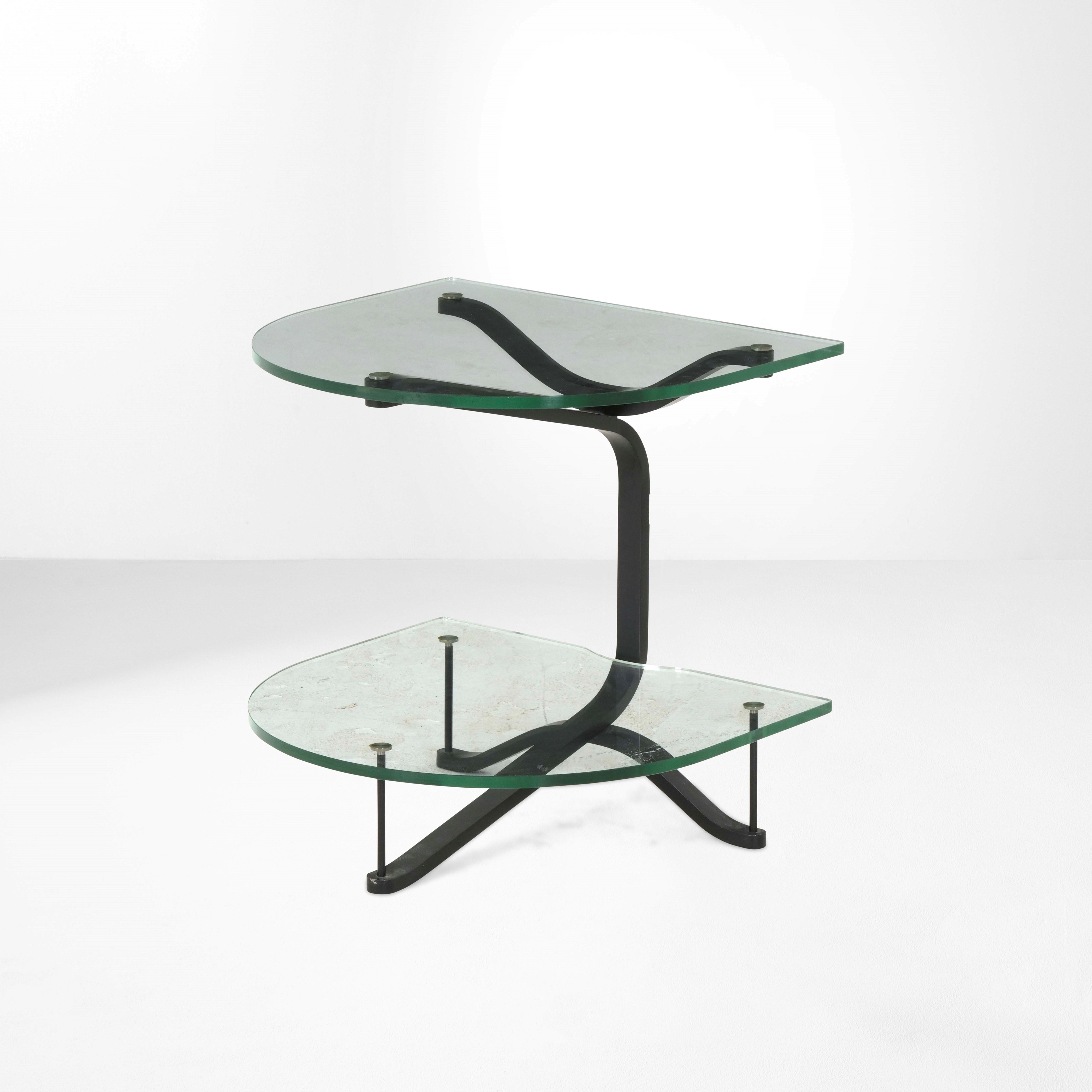 Struttura in metallo laccato con piani in cristallo molato.