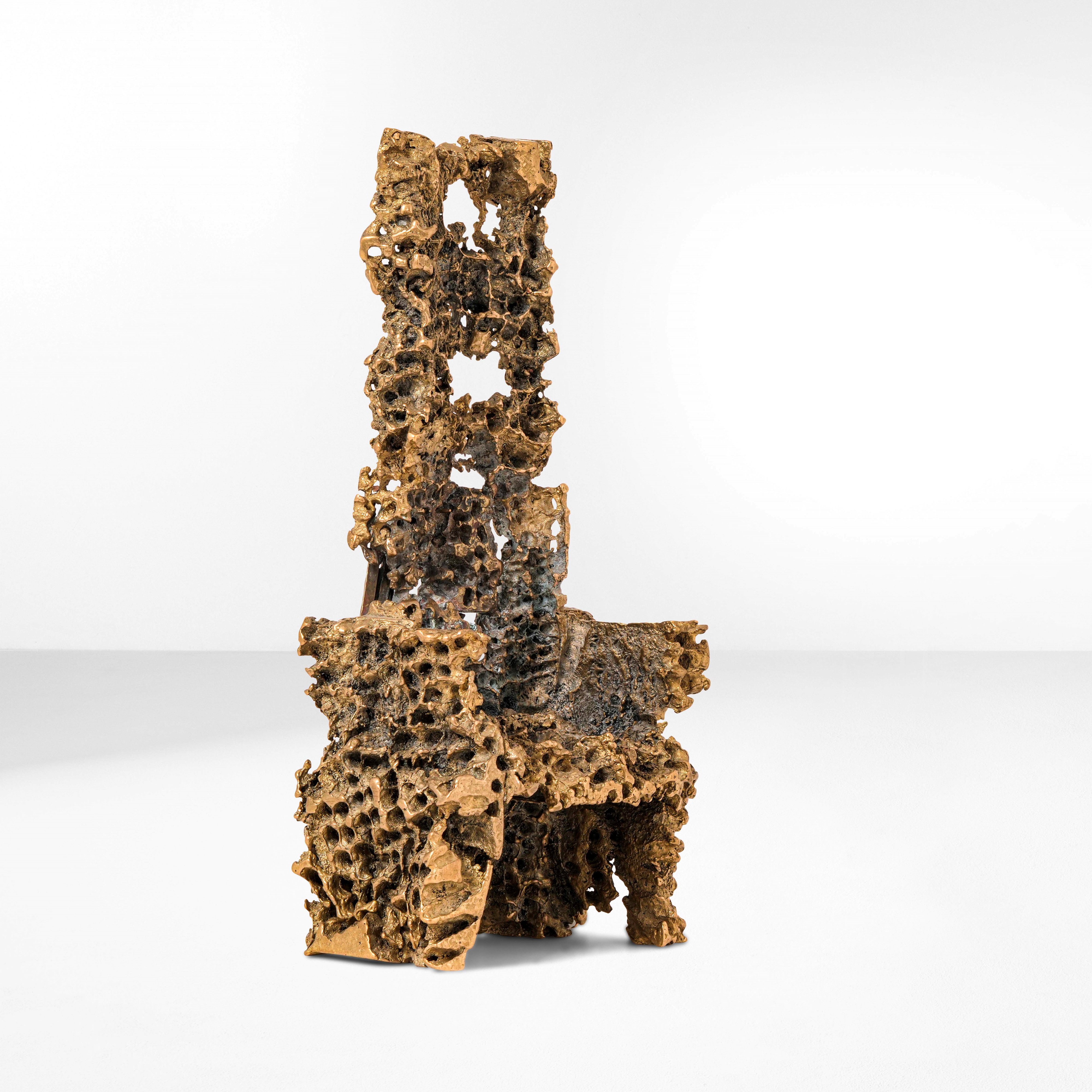 Scultura in fuso di bronzo traforato e dorato.