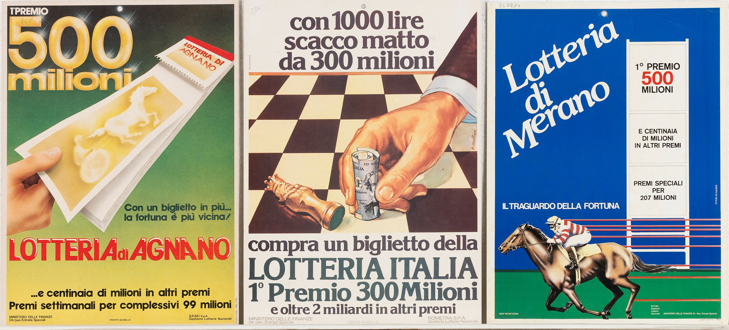 Cartonati pubblicitari "Lotteria " (Agnano, Italia, Merano, Monza e Agnano ).