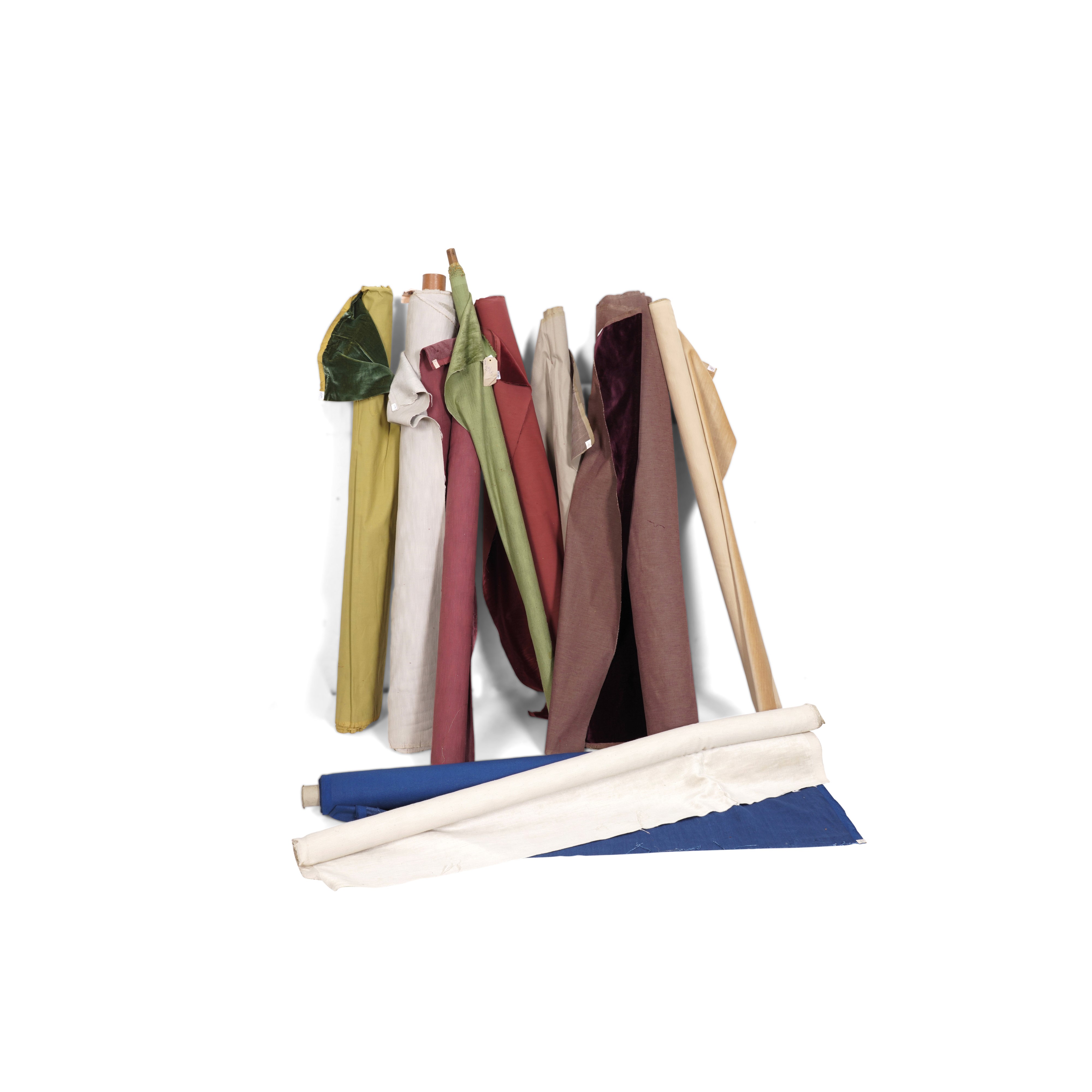 Lotto di dieci pezze di velluto di seta e cotone di varie metrature e colore.