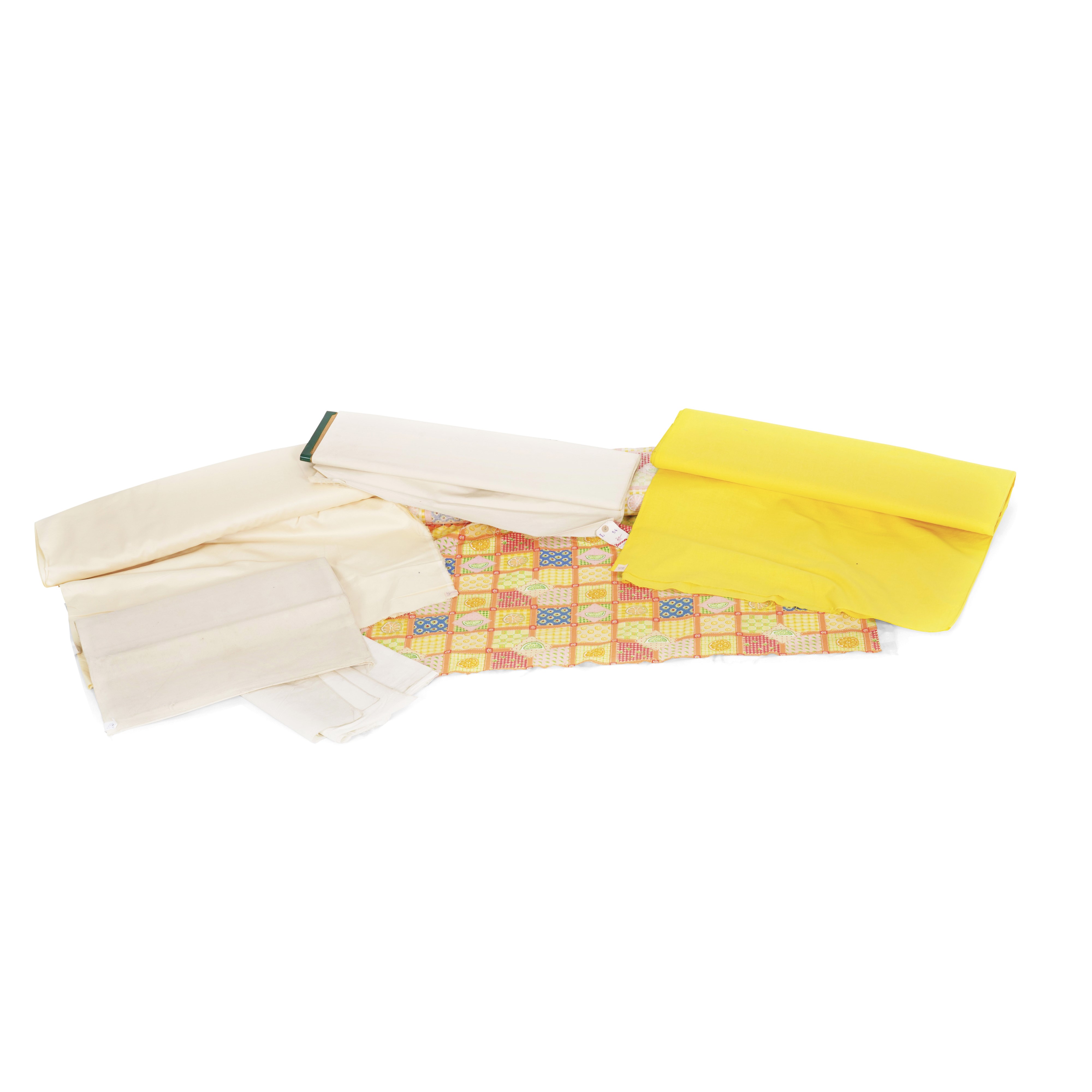 Lotto di sei pezze di cotone bianco, giallo e a disegni