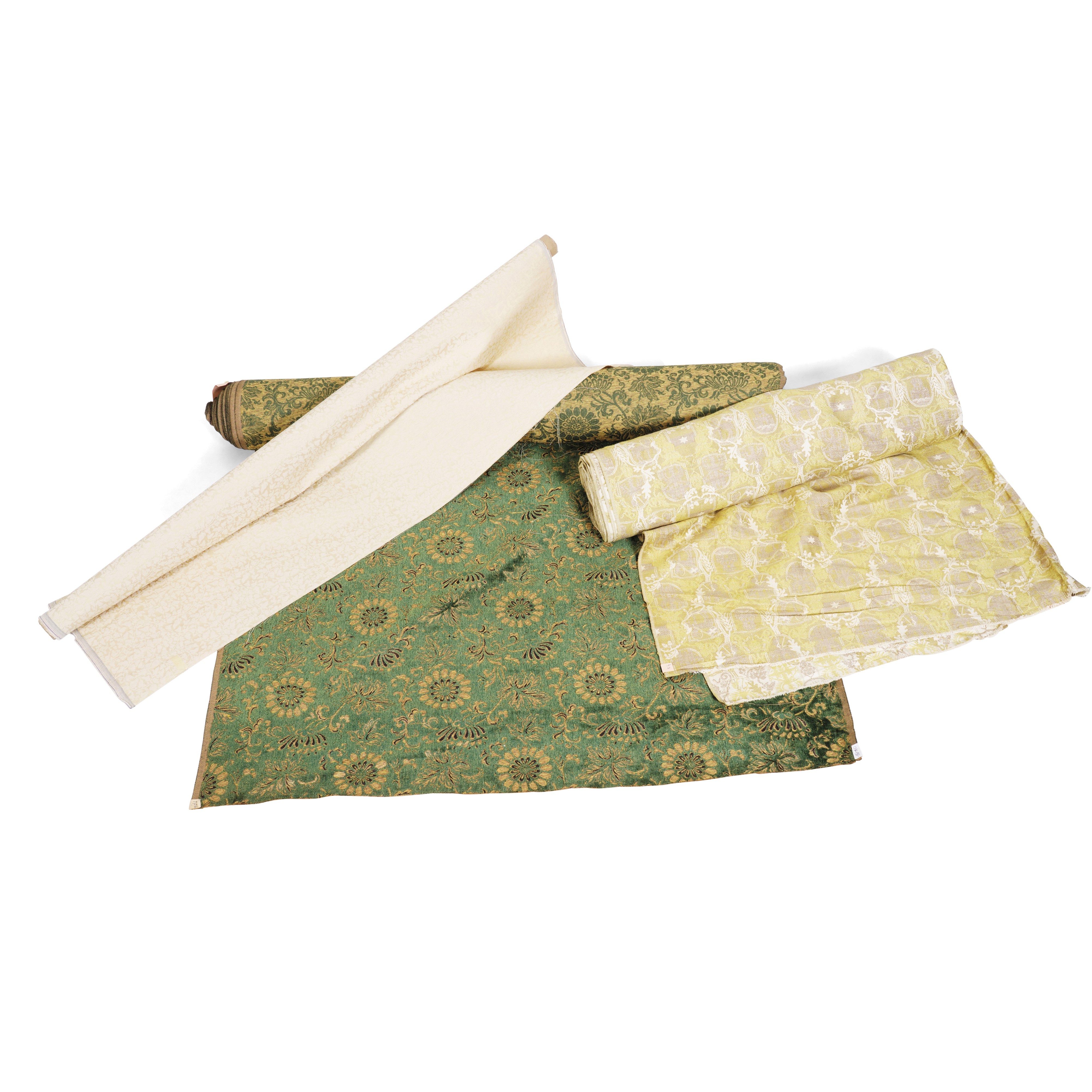 Lotto di tre pezze di cui una in velluto intagliato verde