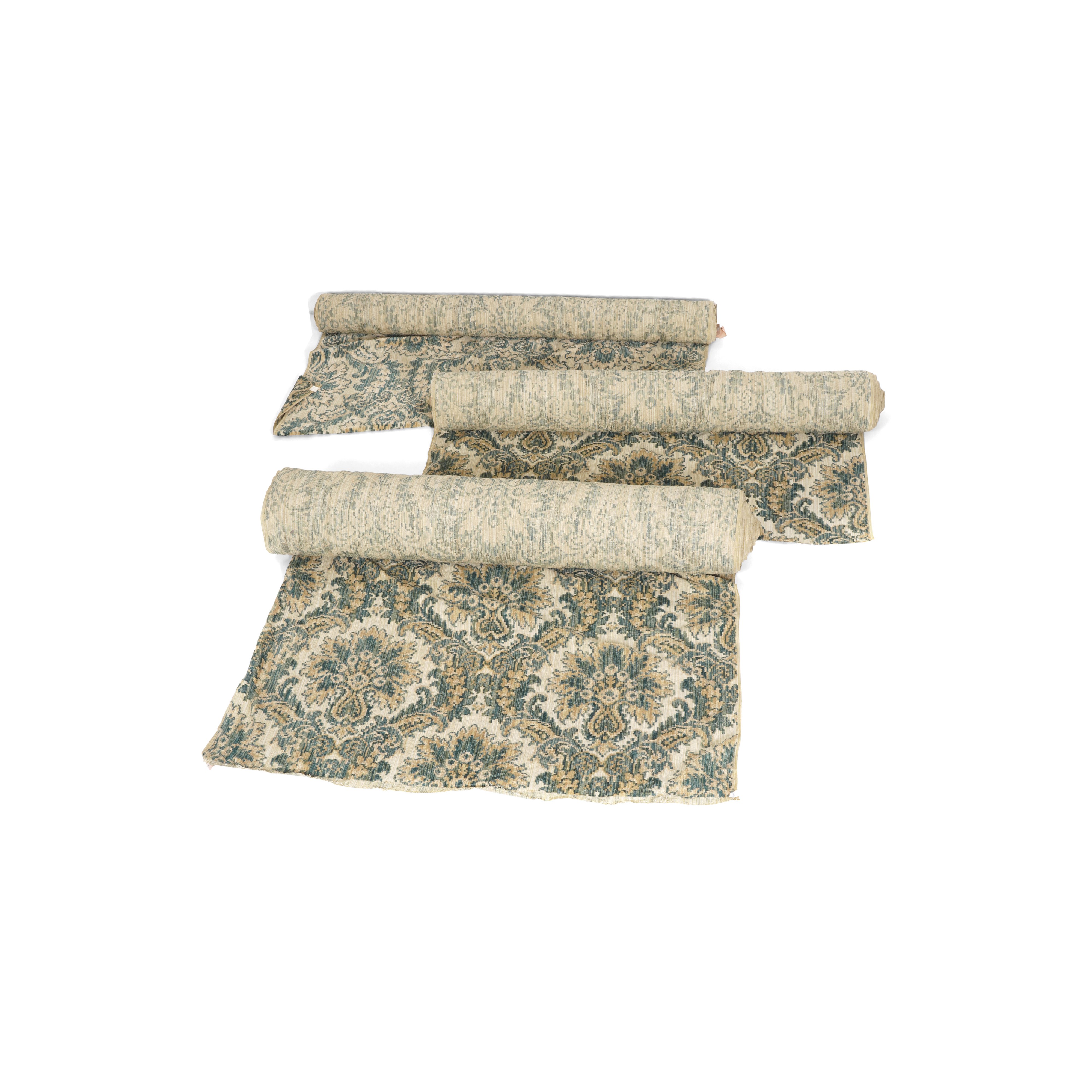 Lotto di tre pezze di varie misure, di velluto intagliato di cotone color verde