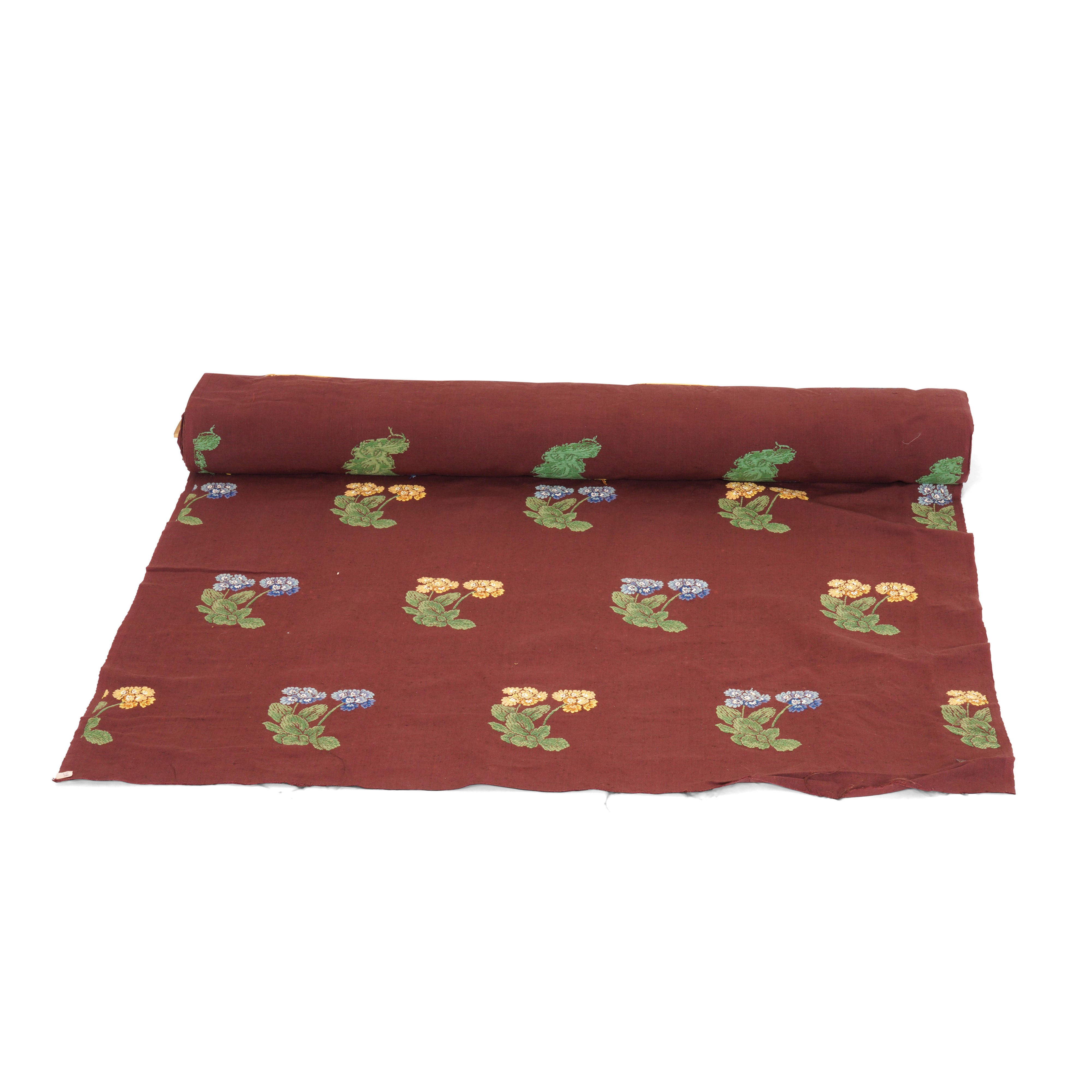 Una pezza di cotone marrone con fiori ricamati