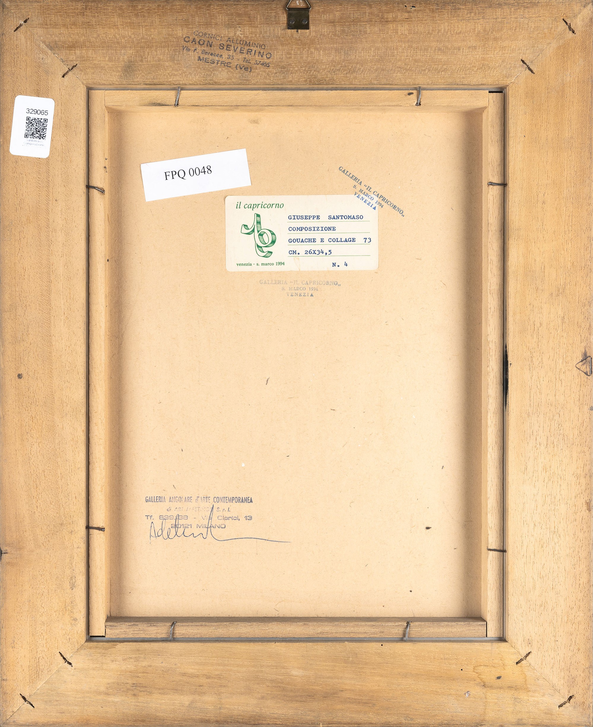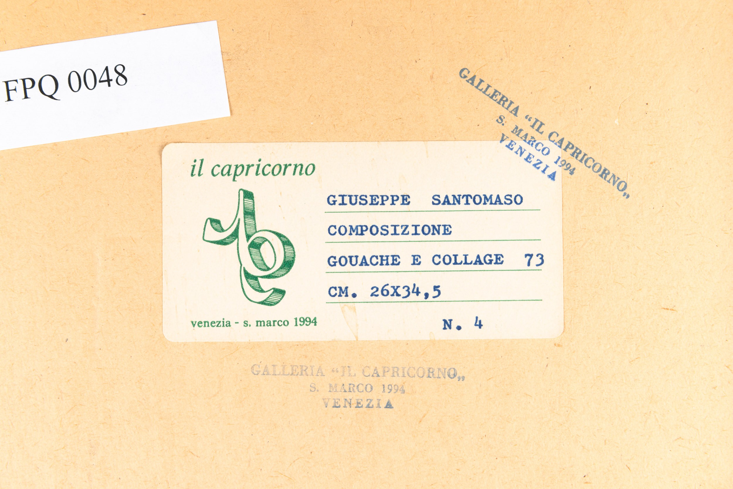 etichetta al retro della Galleria Il Capricorno, Venezia
