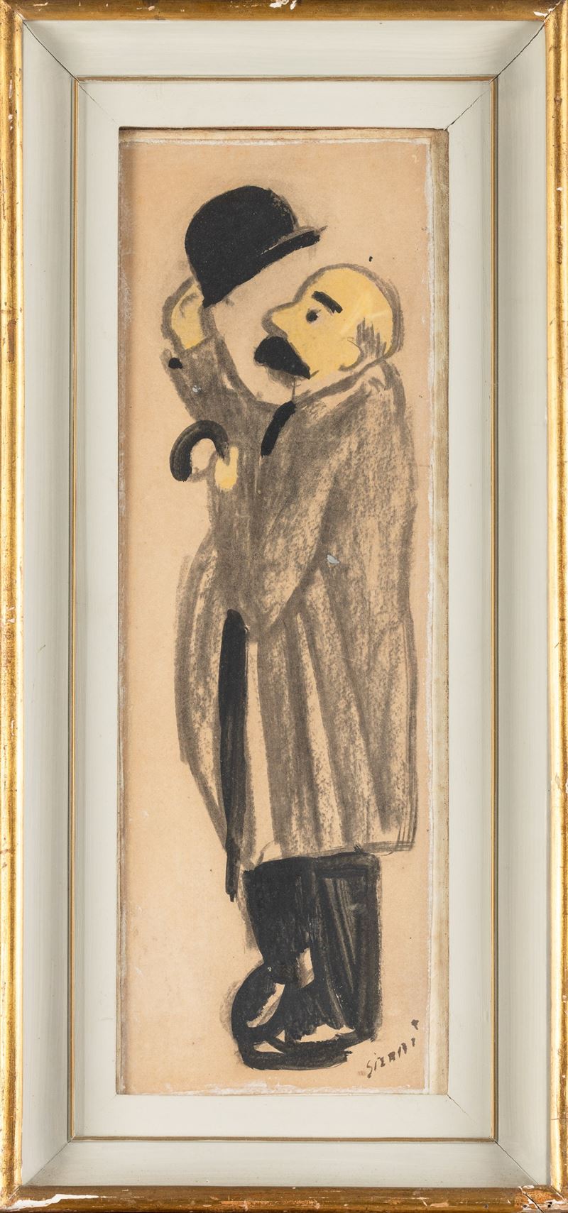 Figura maschile con bombetta e ombrello , 1920 circa