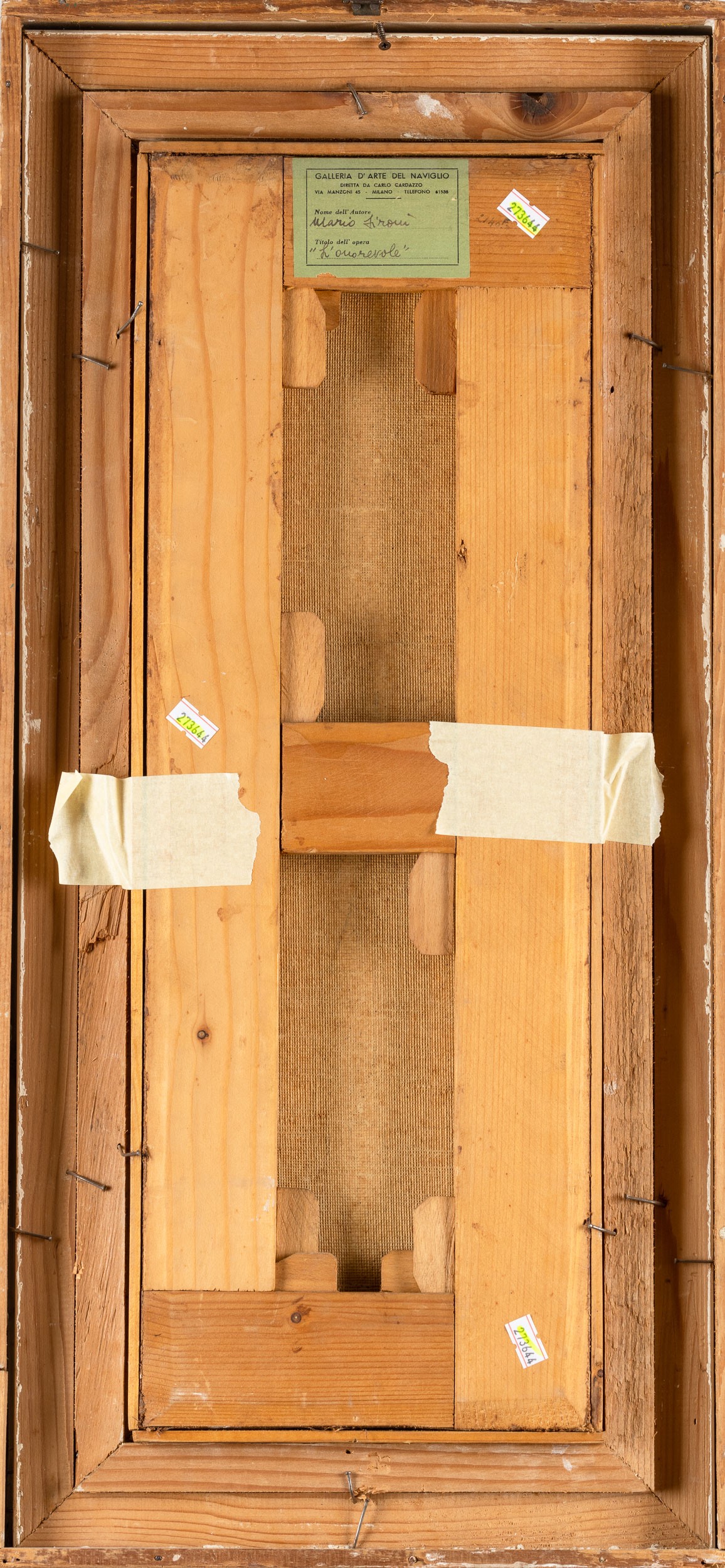 Etichetta al retro della Galleria d'Arte del Naviglio, Milano