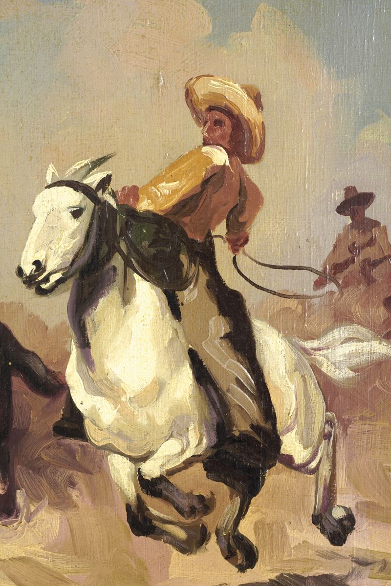 Anonimo del XIX secolo Cavalieri e cavalli nella tampas