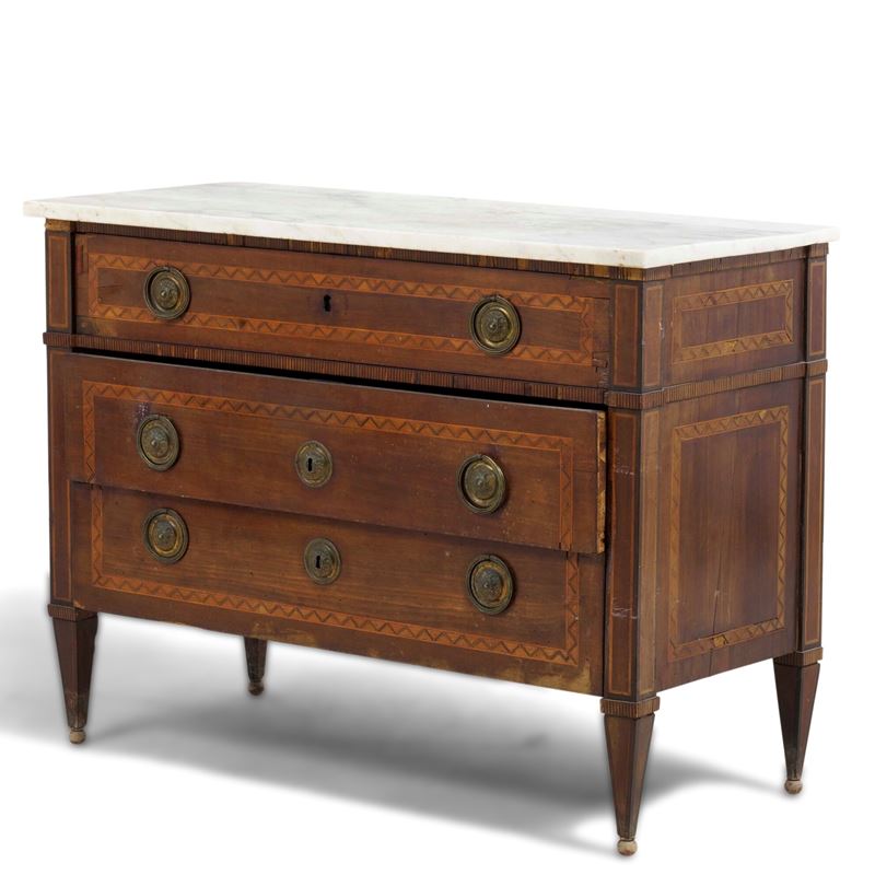 Cassettone Direttorio lastronato e filettato. Fine XVIII-inizi XIX secolo