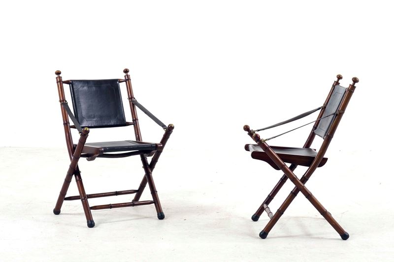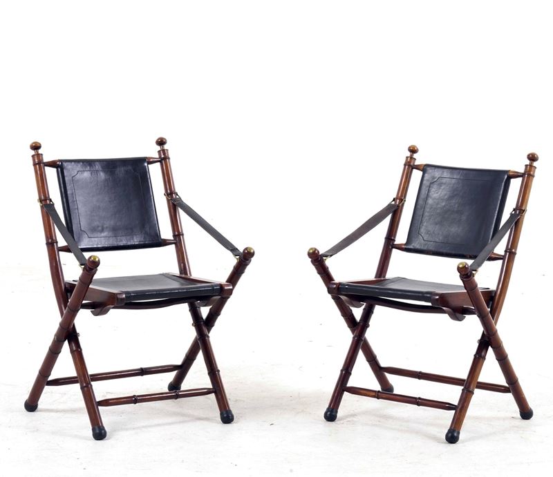 Coppia di sedie coloniali pieghevoli. XX secolo