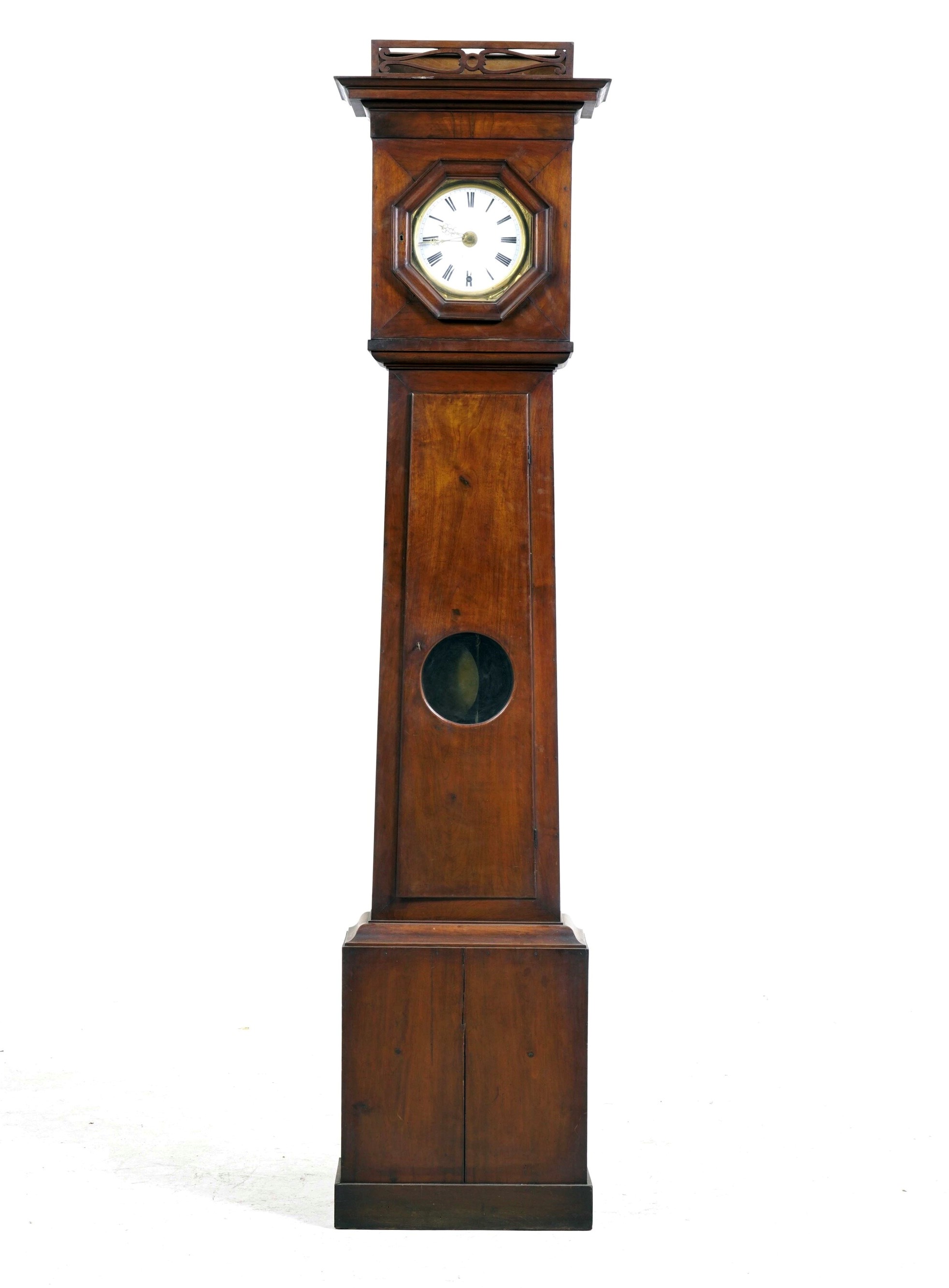 Cassa in legno, quadrante in smalto bianco con numeri romani