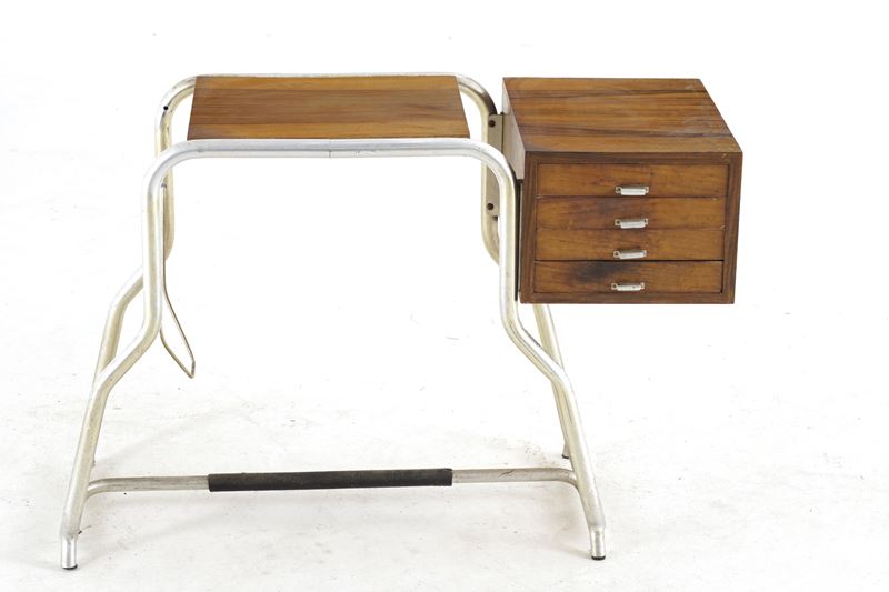 Scrivania in metallo e legno. XX secolo