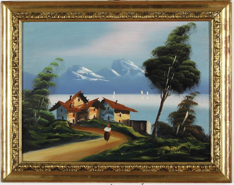 Scuola del XX secolo Veduta di Albenga / Paesaggio lacustre