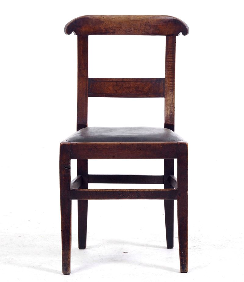 Seduta imbottita rivestita in pelle, schienale a giorno lievemente arcuato
