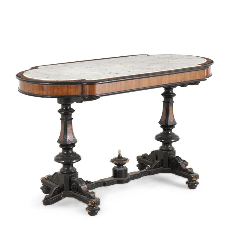 Tavolo in legno lastronato ed ebanizzato, XIX secolo