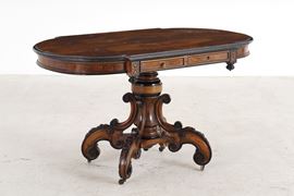 Tavolo lastronato in radica. Inghilterra, XIX secolo