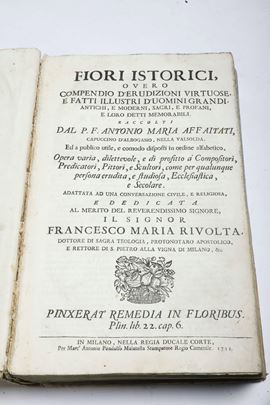 Affaitati Antonio Maria (1660-1721) Fiori istorici, overo compendio d'erudizioni virtuose.. In Milano, Antonio Pandolfo [..]