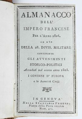 Almanacco dell'Impero francese per l’anno 1806 ad uso della 28. divis. militare contenente gli avvenimenti storico-politici accaduti nel scorso anno 1805