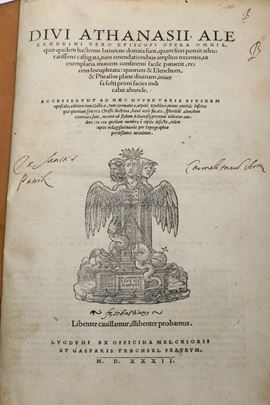 Atannasio Alessandrino (?-373 d.C.) Divi Athanasii Alexandrini vero episcopi Opera omnia... Lugduni : ex officina Melchioris [..]