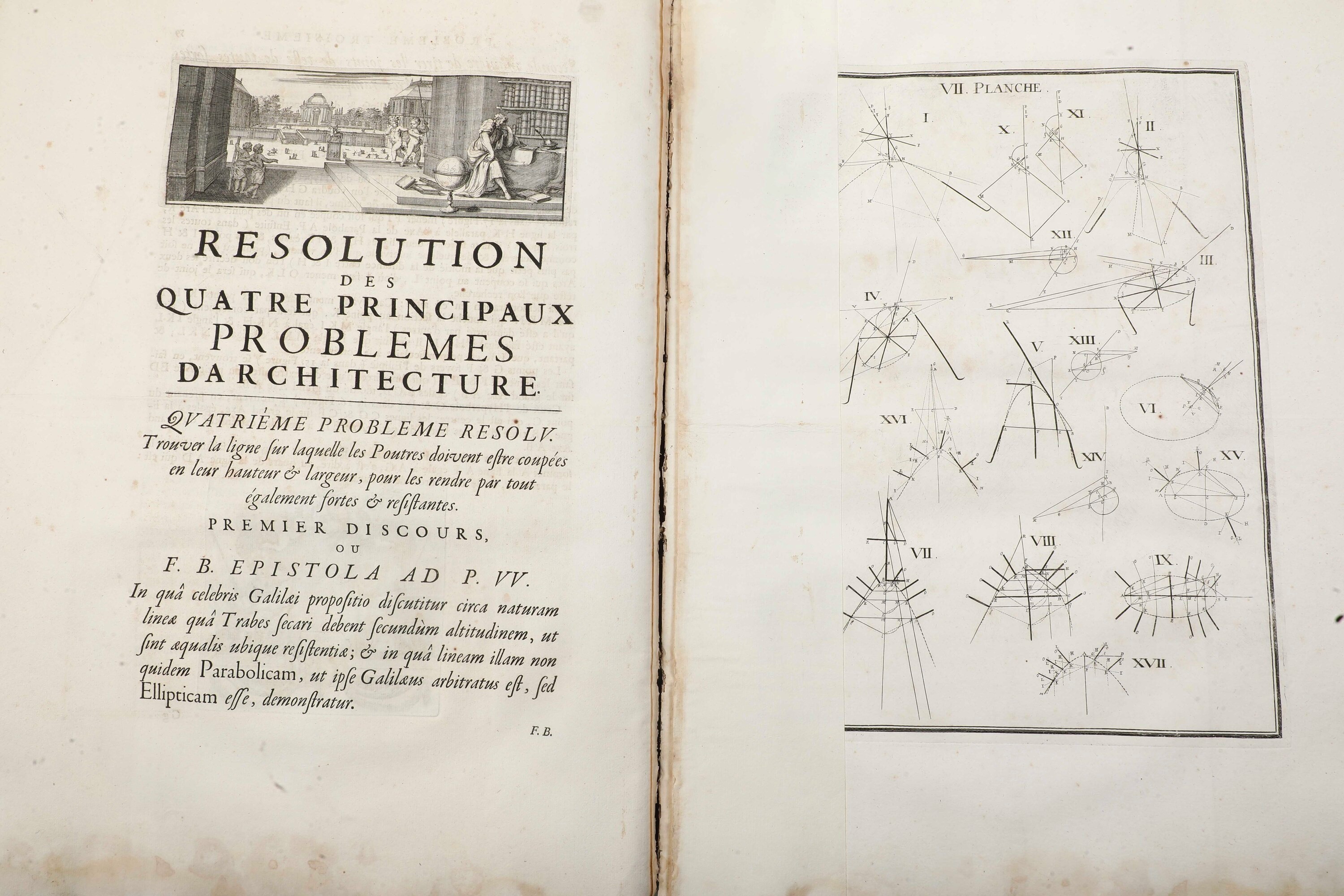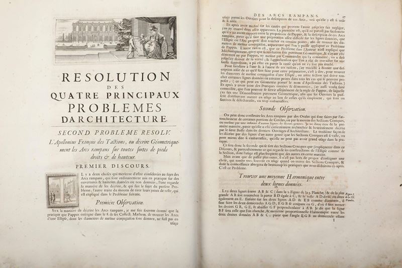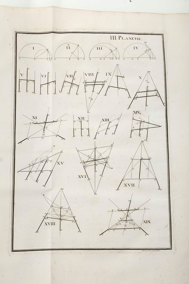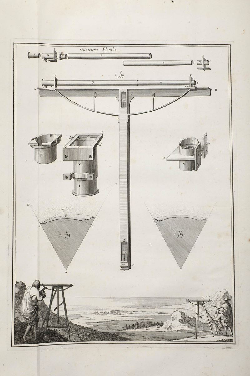 Grande in-folio. Rilegatura antica in cartone e dorso in pergamena che presenta rotture e mancanze. Grande antiporta incisa e 14 tavole ripiegate di carattere tecnico (staccate).
