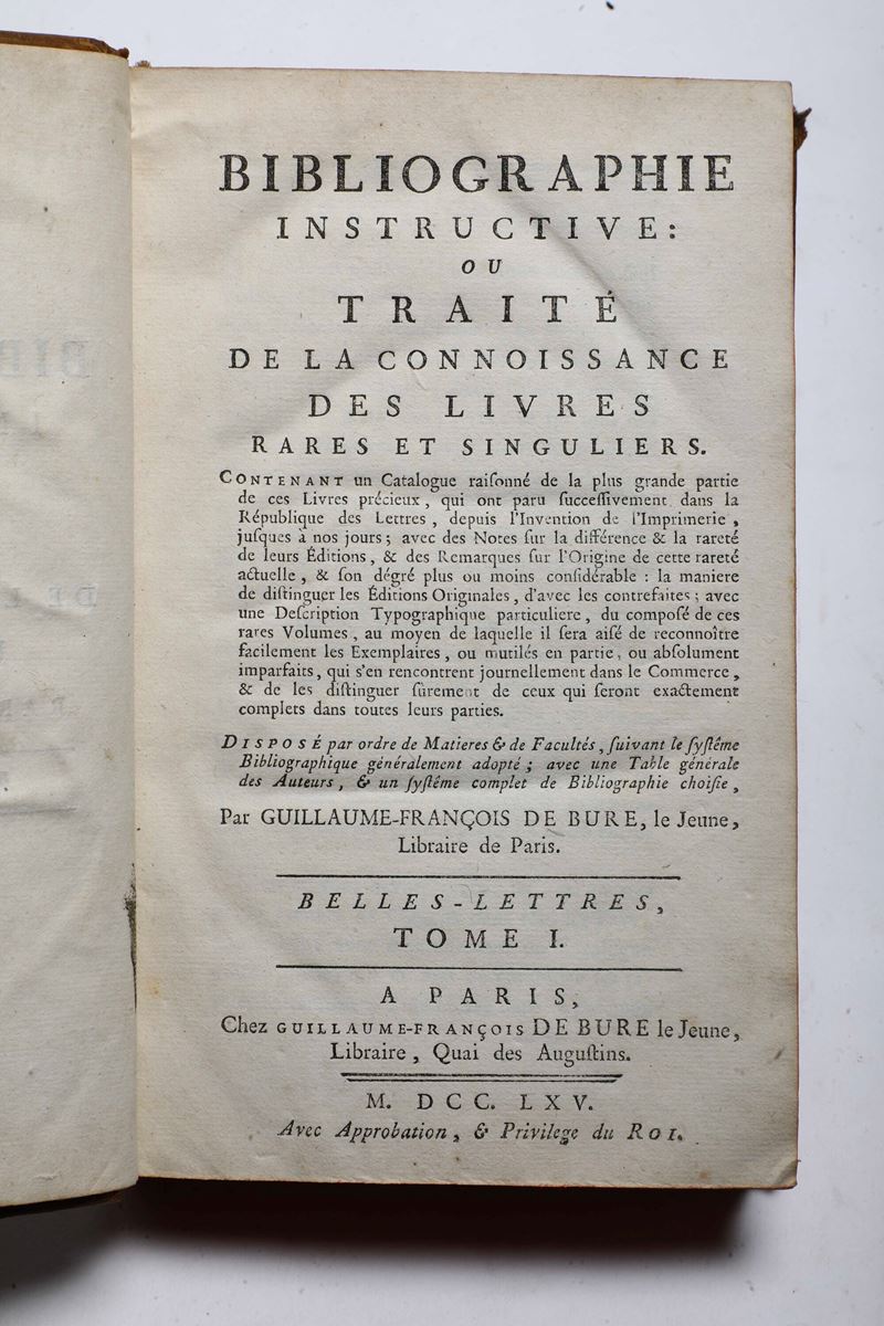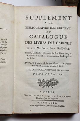 Bure Guillaume-François de, le Jeune (1732-1782) Bibliographie istructive.. /Supplement a la bibliographie.. A Pari, chez [..]